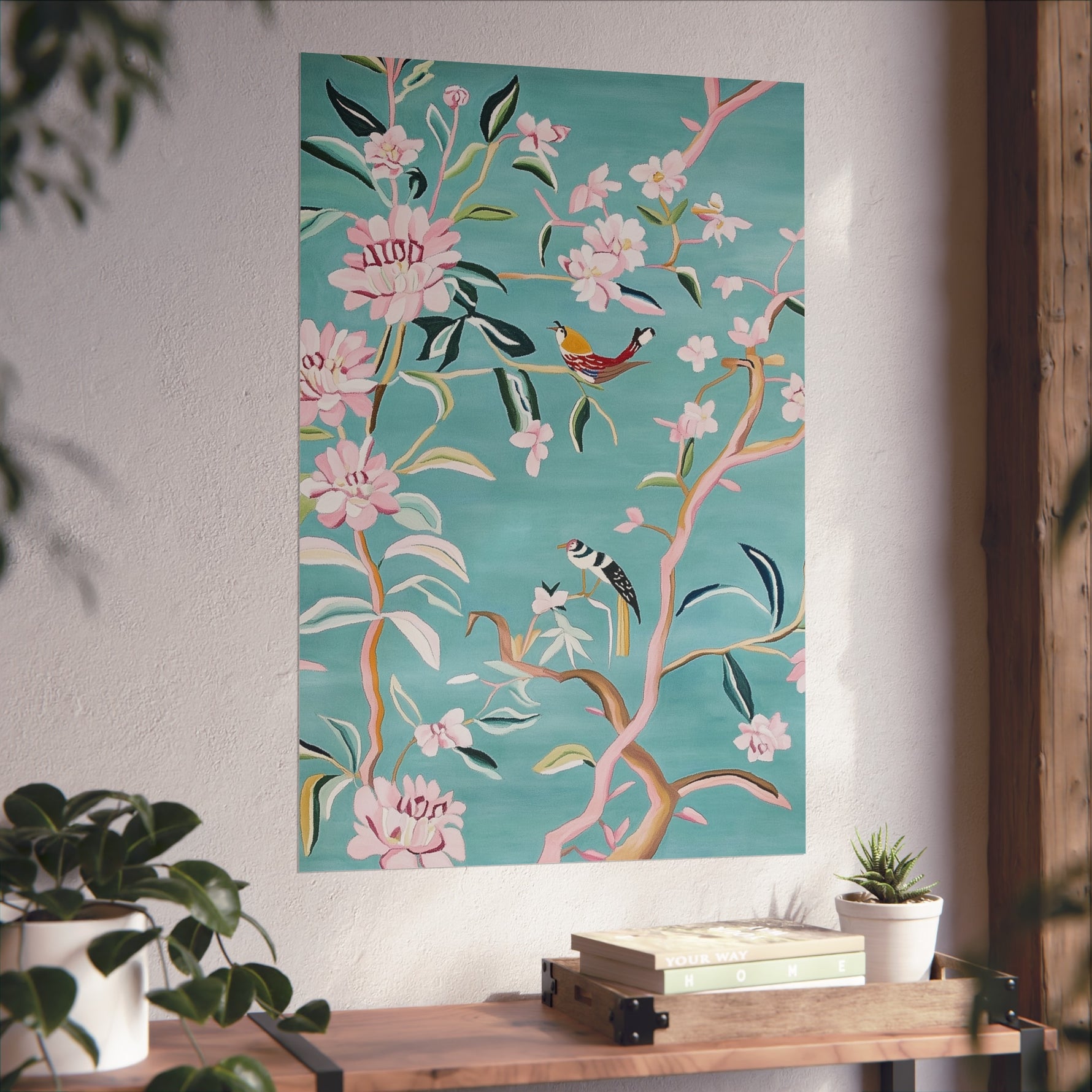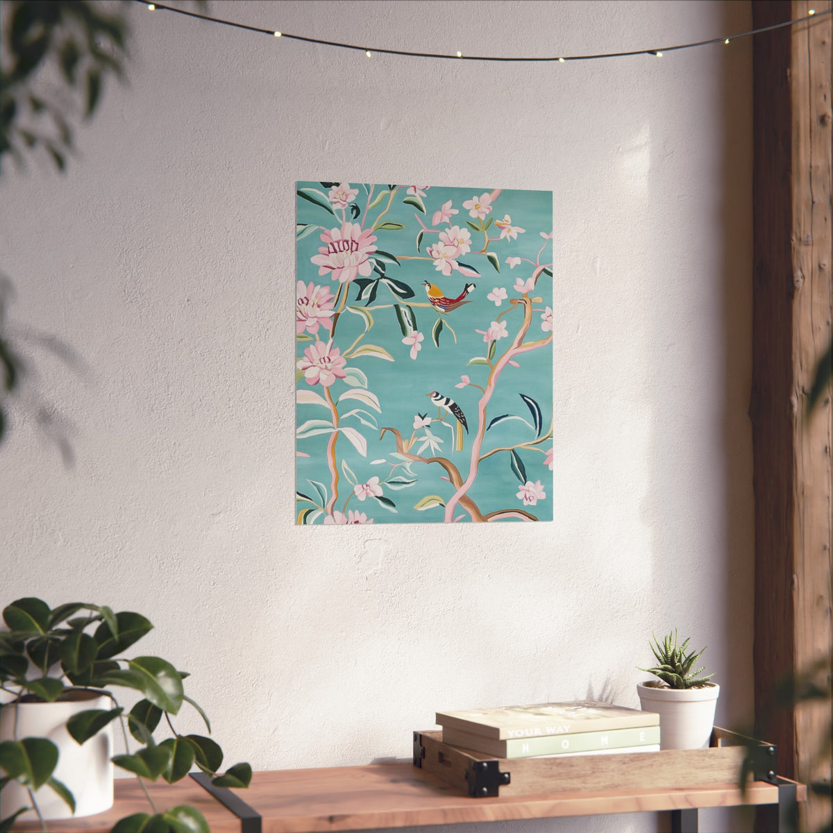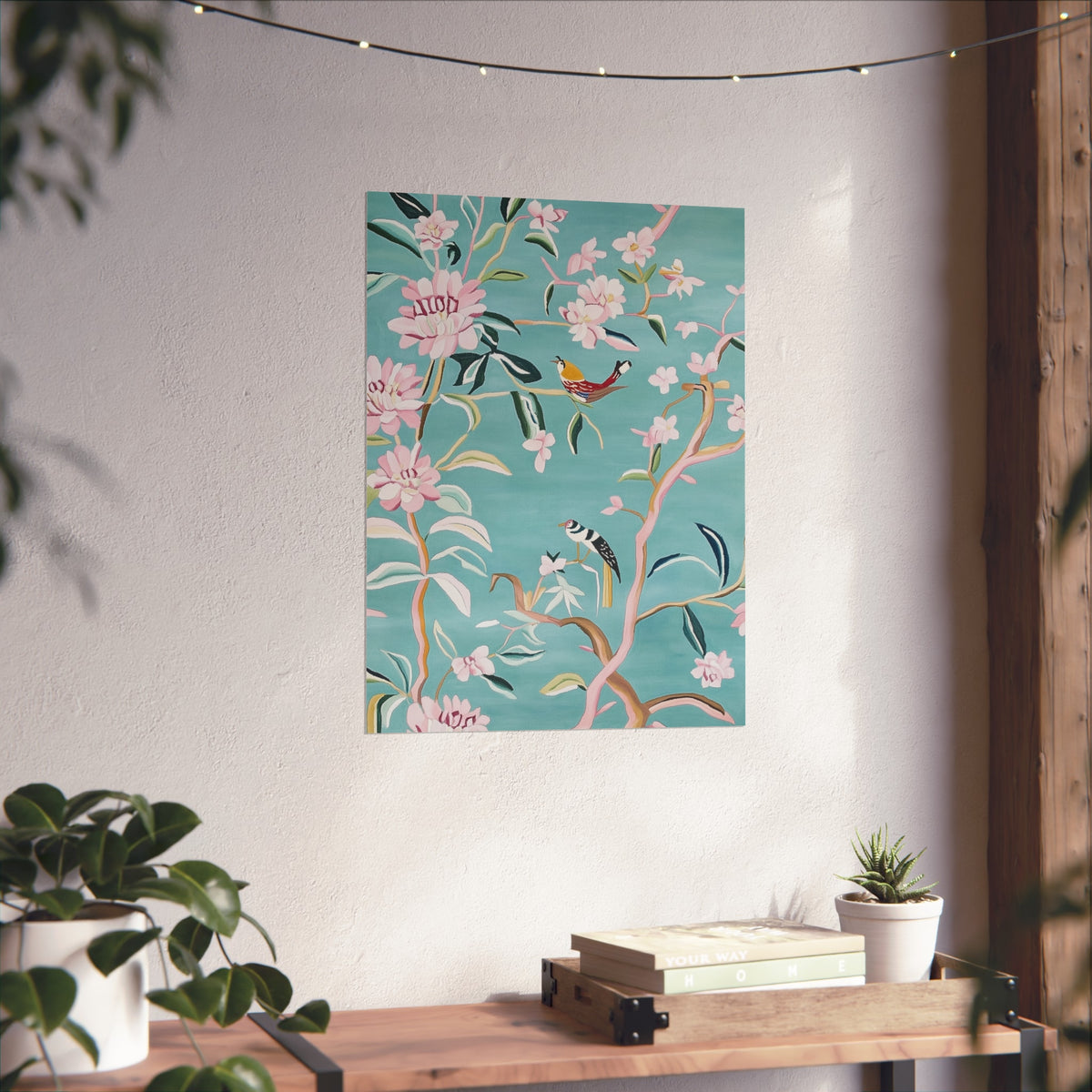 Chinoiserie Birds and Cherry Blossom Fine Art Poster