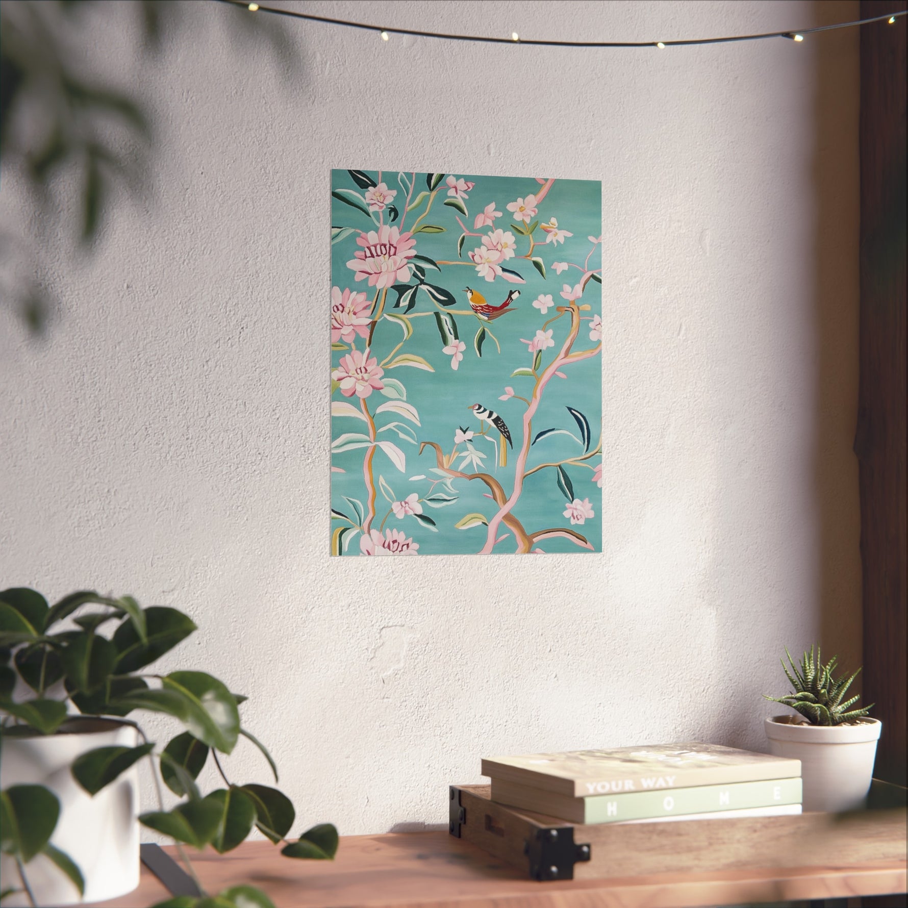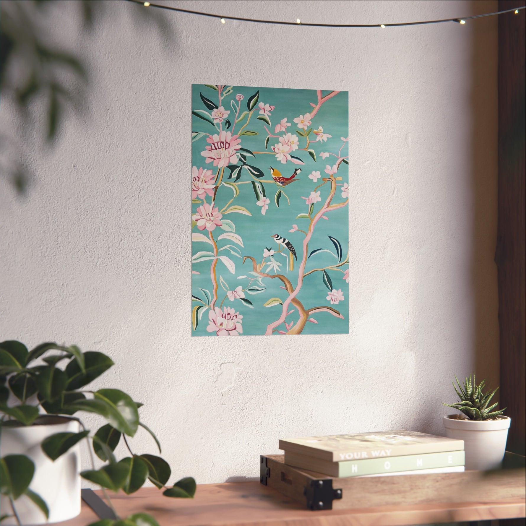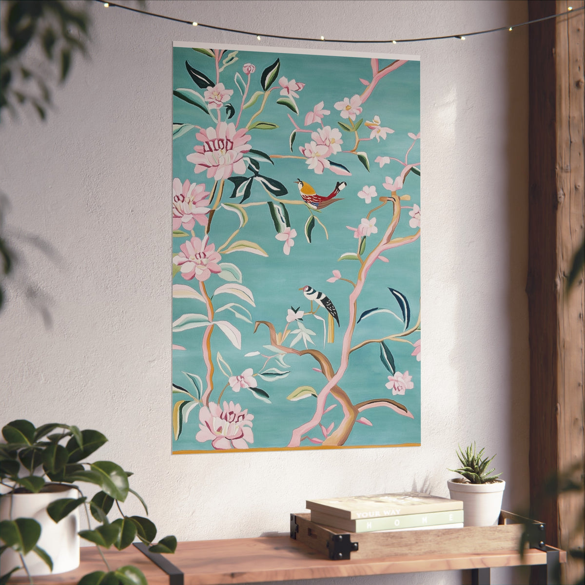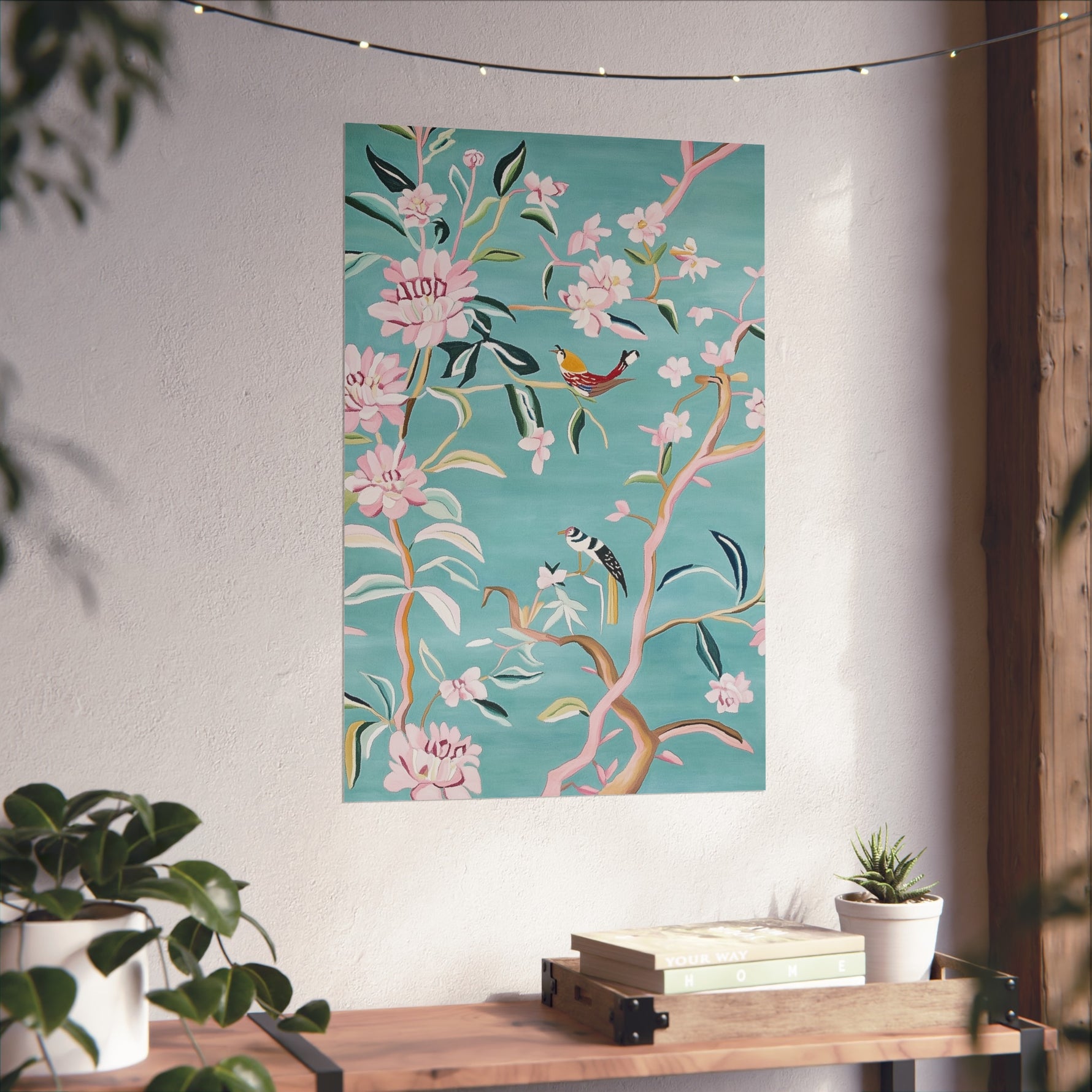 Chinoiserie Birds and Cherry Blossom Fine Art Poster