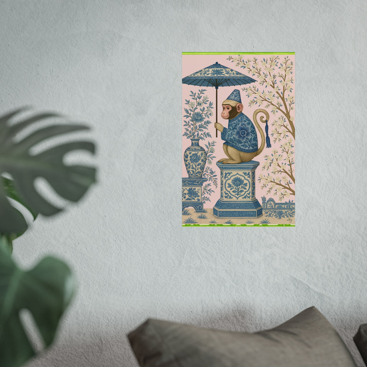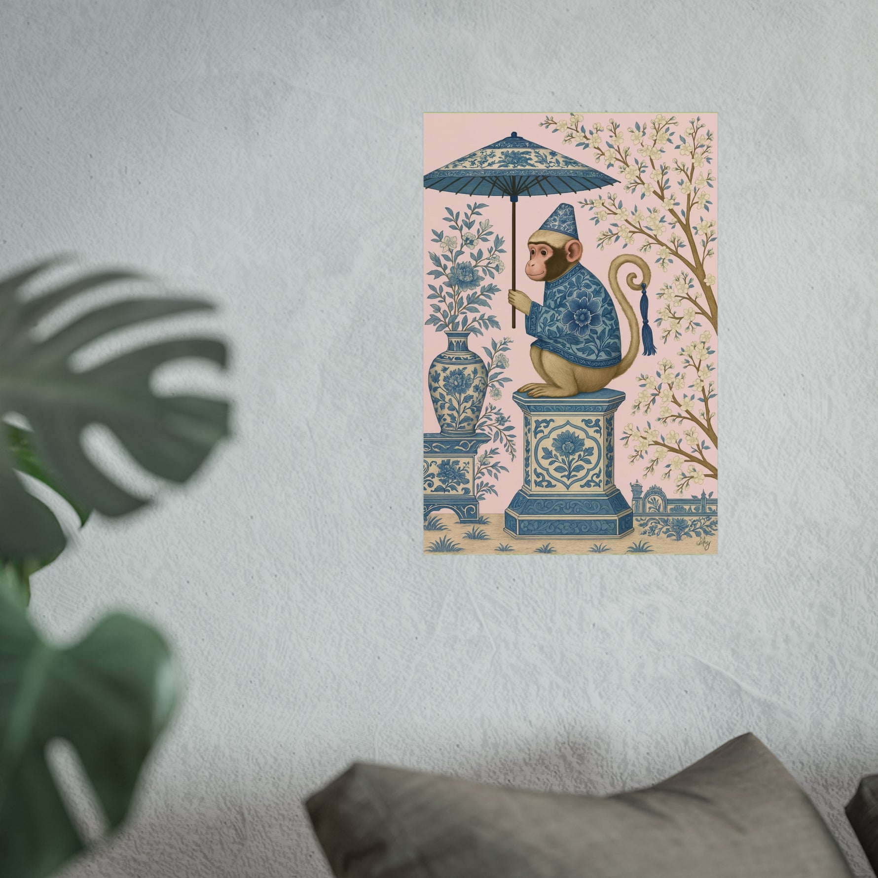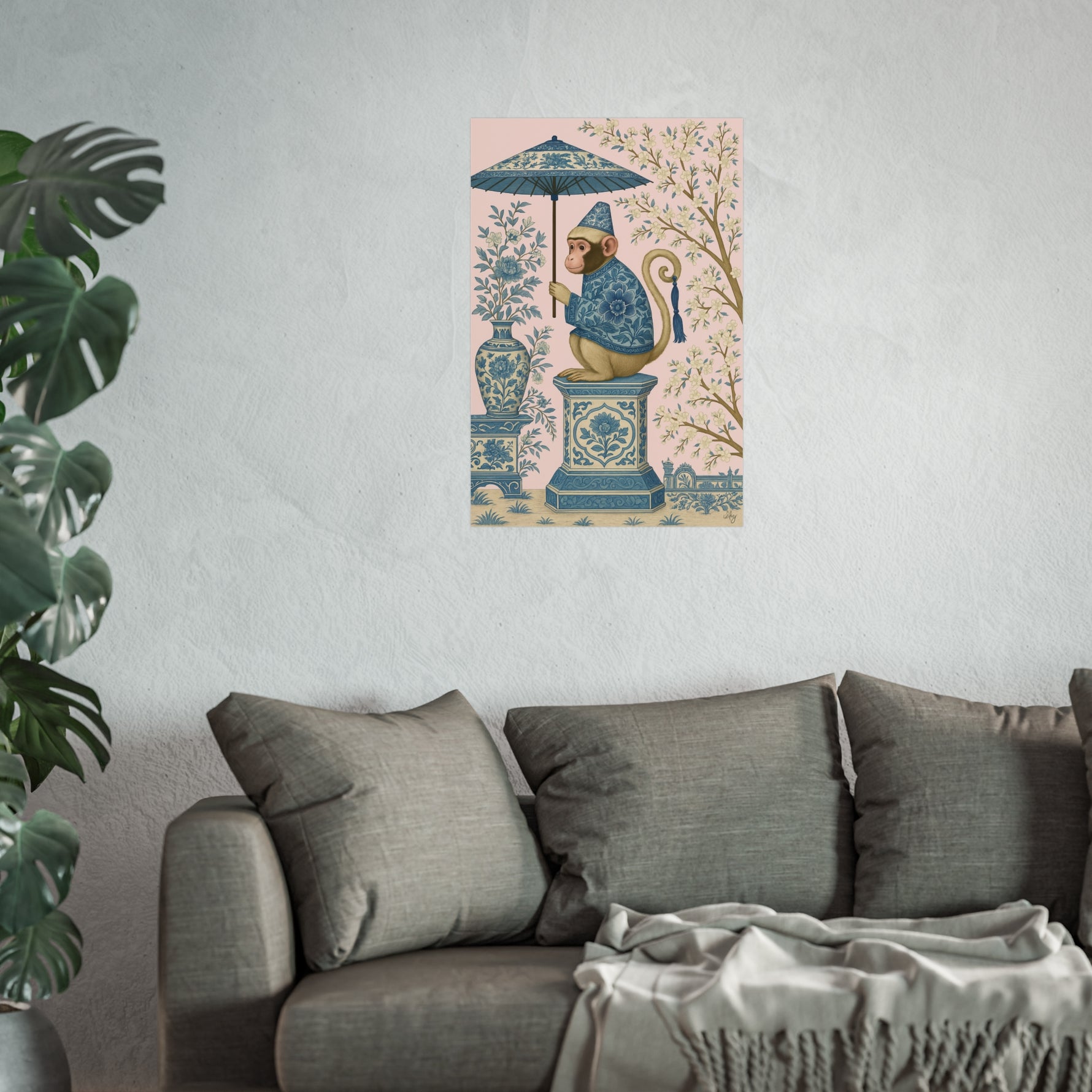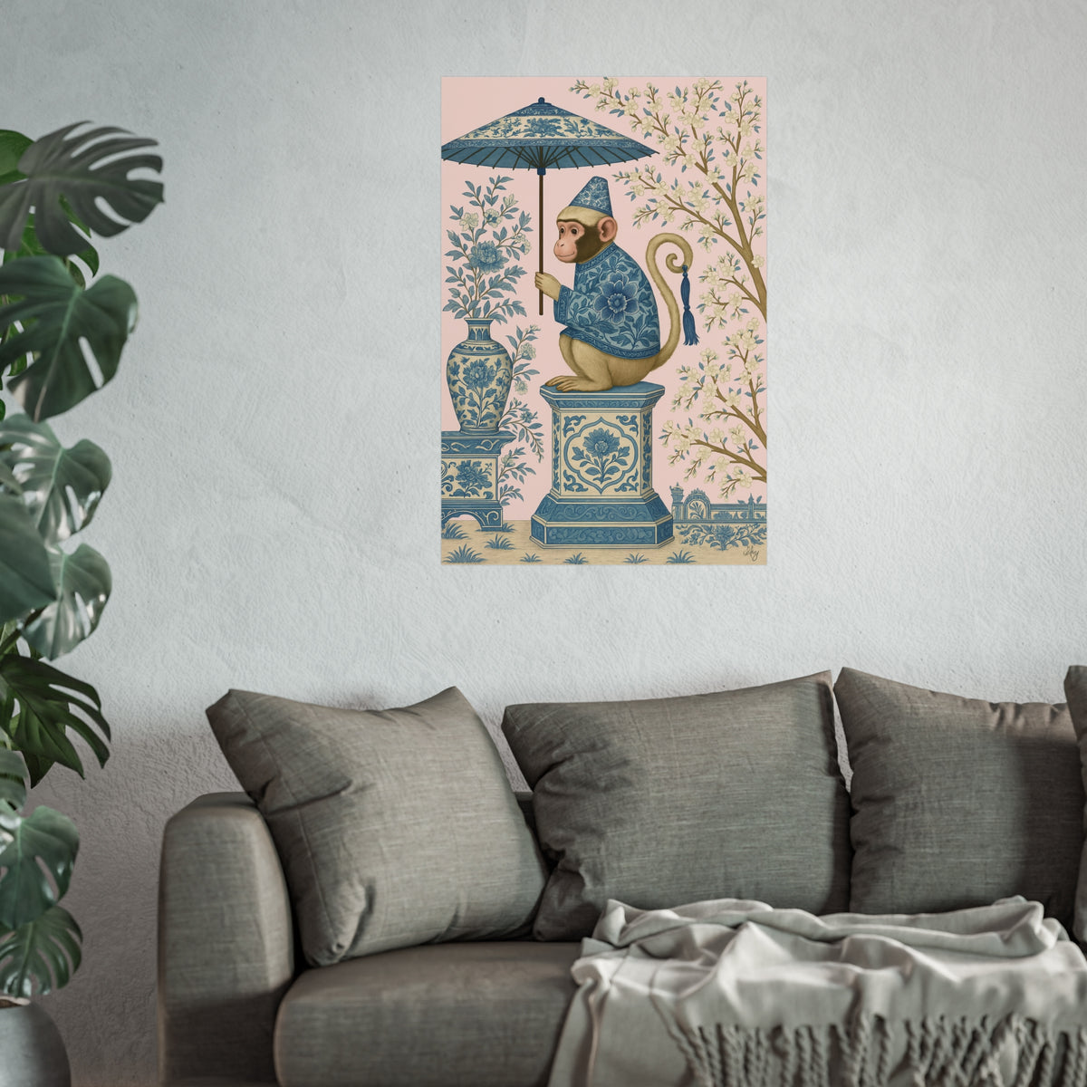 Chinoiserie Blue Monkey on Pedestal Fine Art Poster