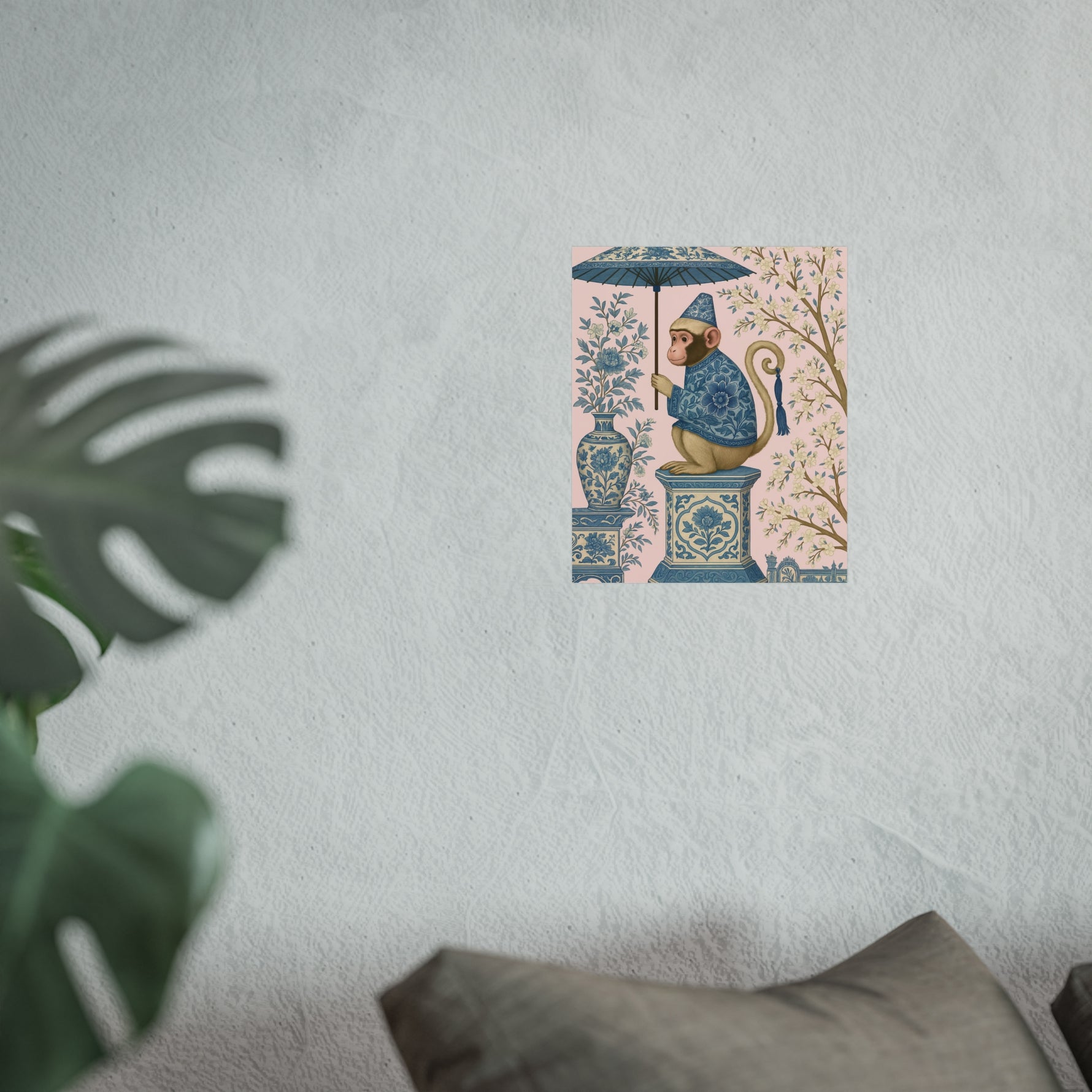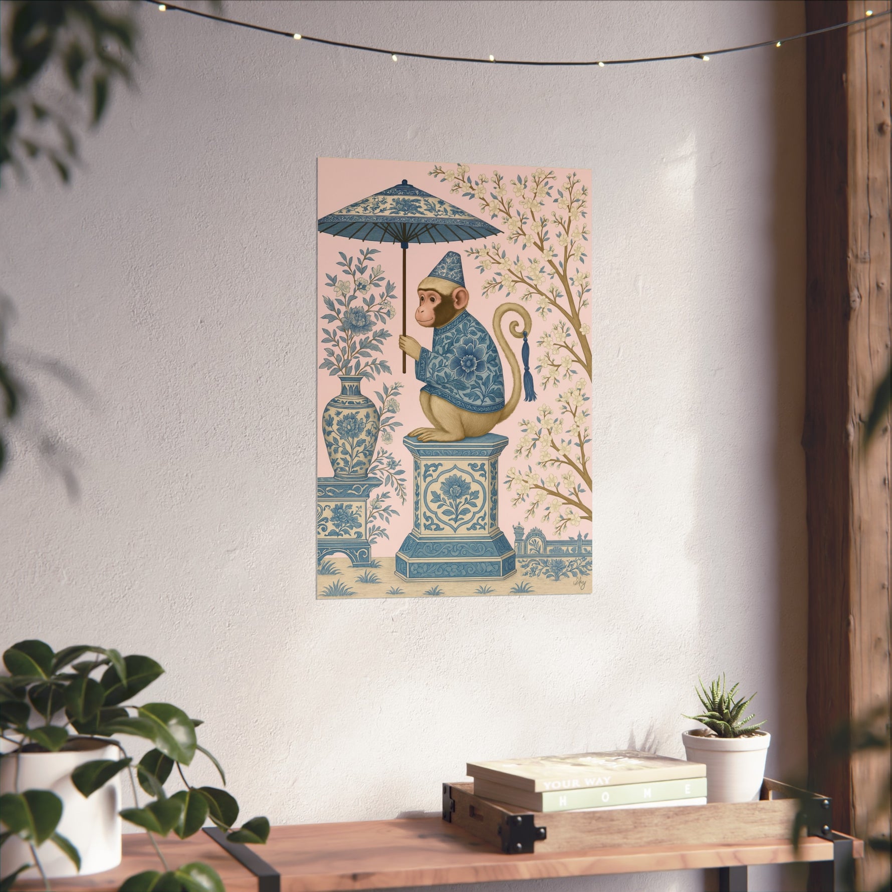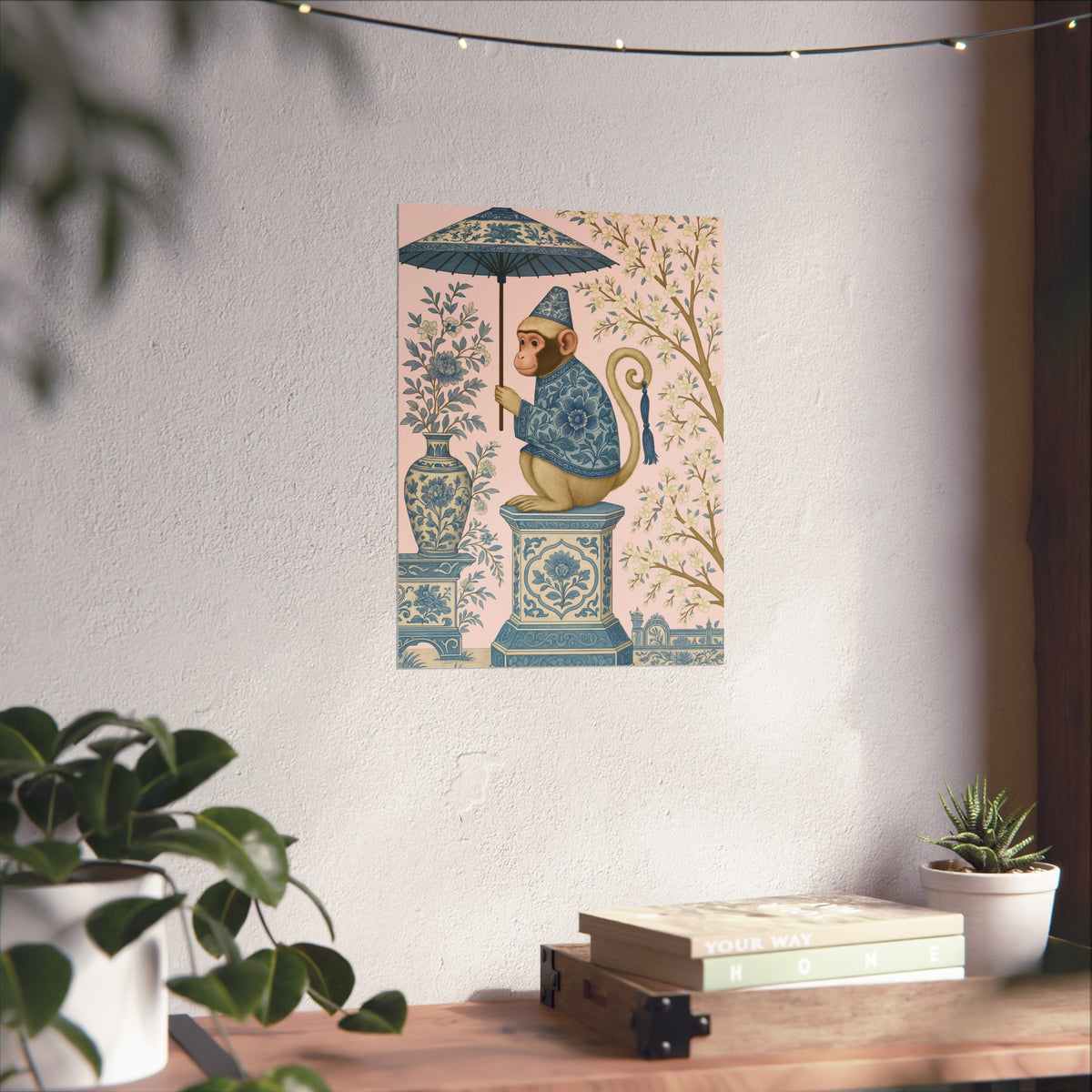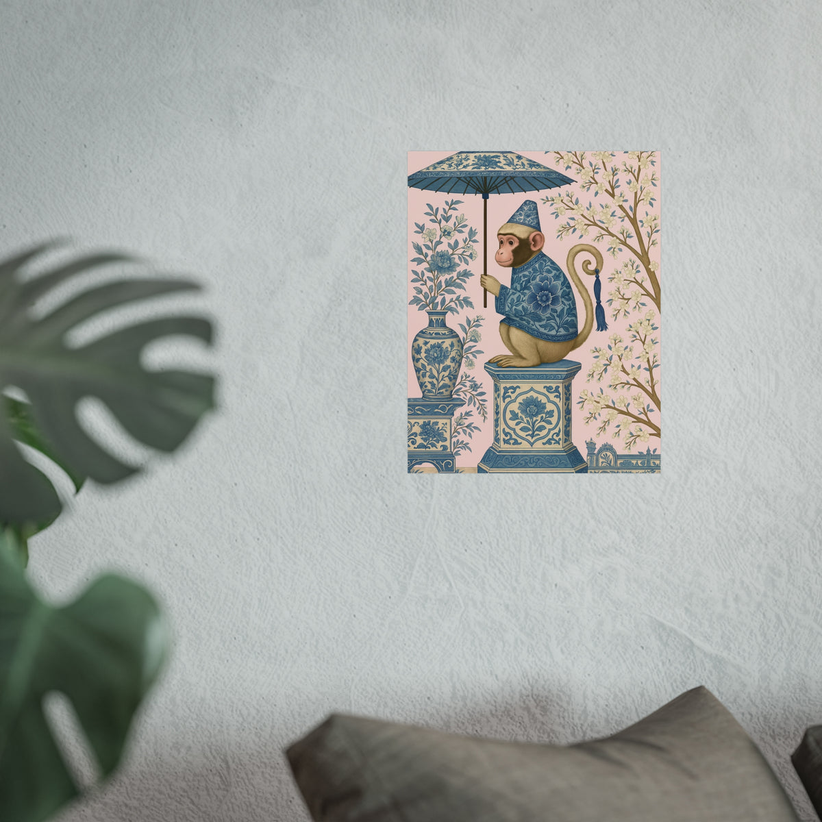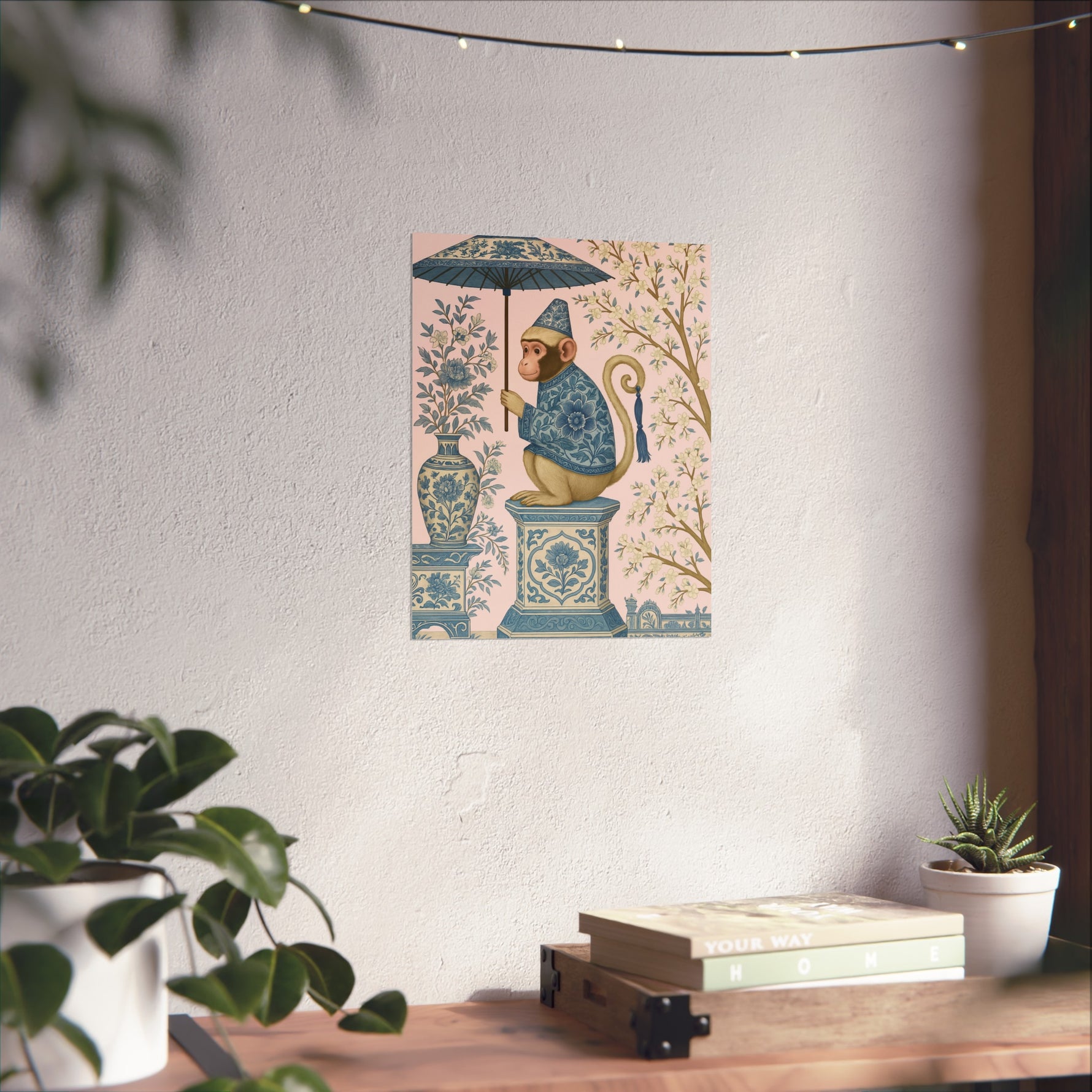 Chinoiserie Blue Monkey on Pedestal Fine Art Poster
