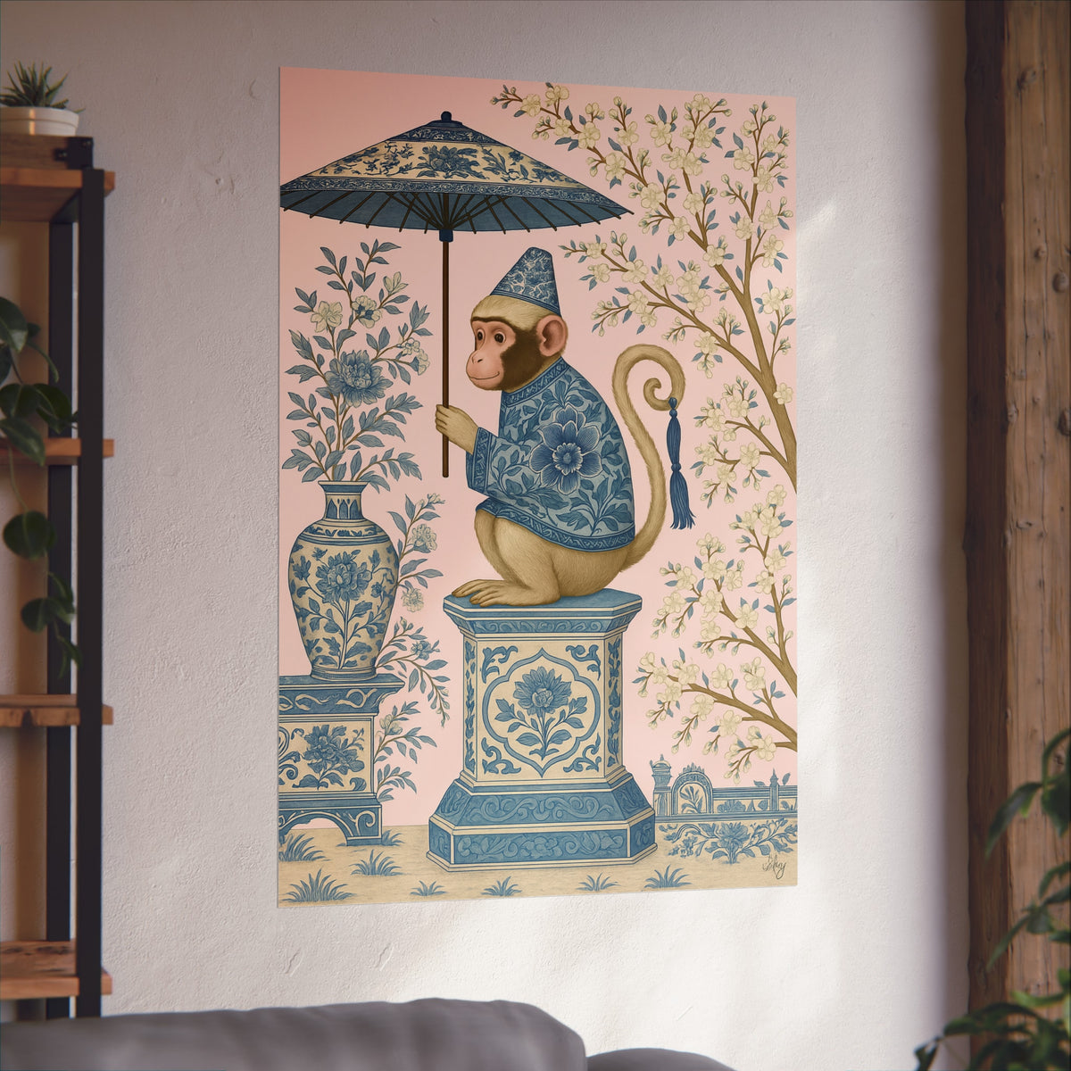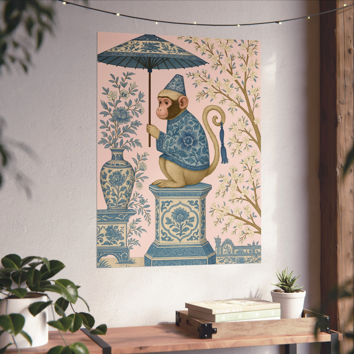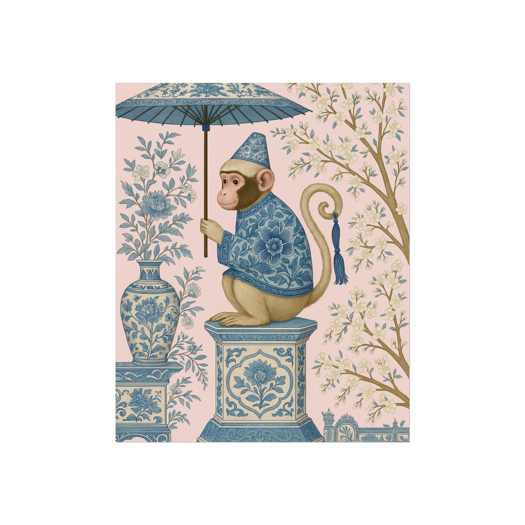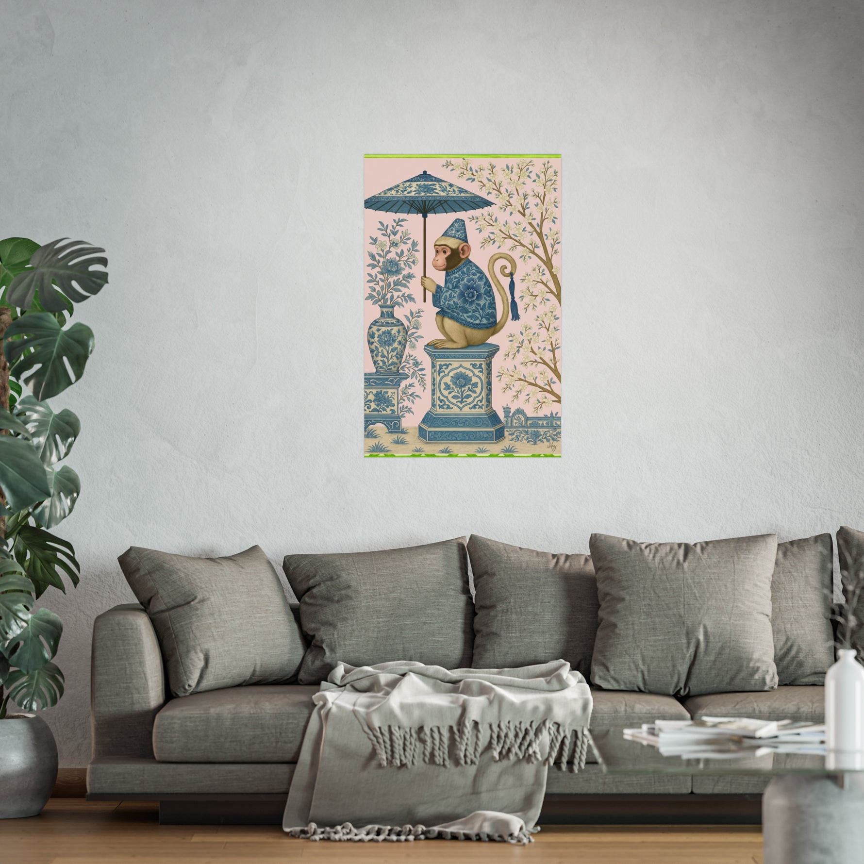 Chinoiserie Blue Monkey on Pedestal Fine Art Poster