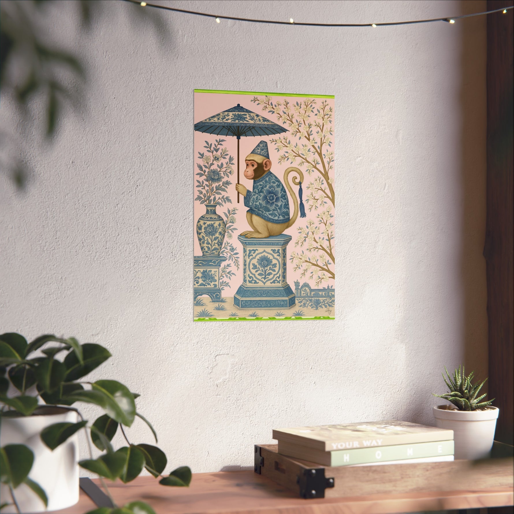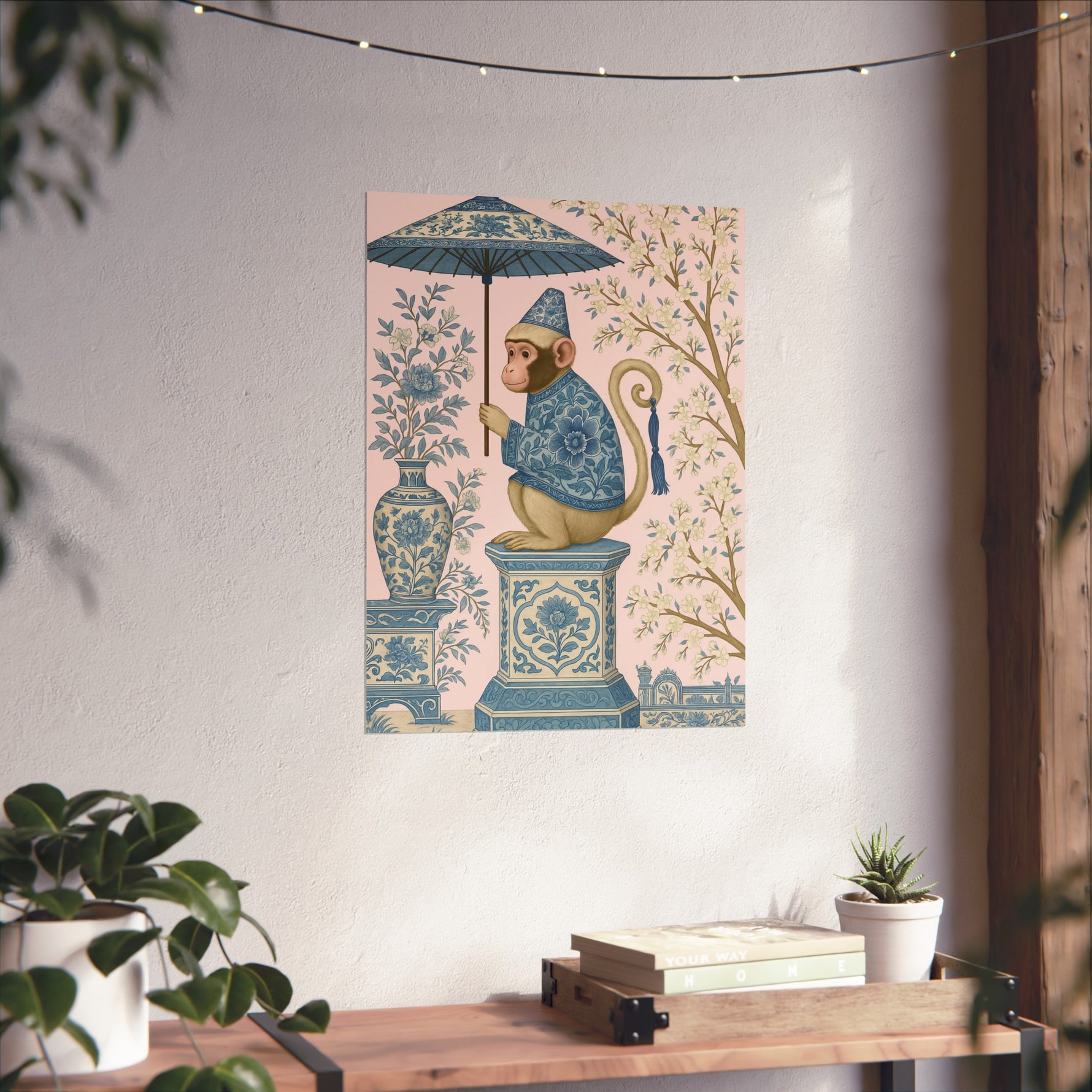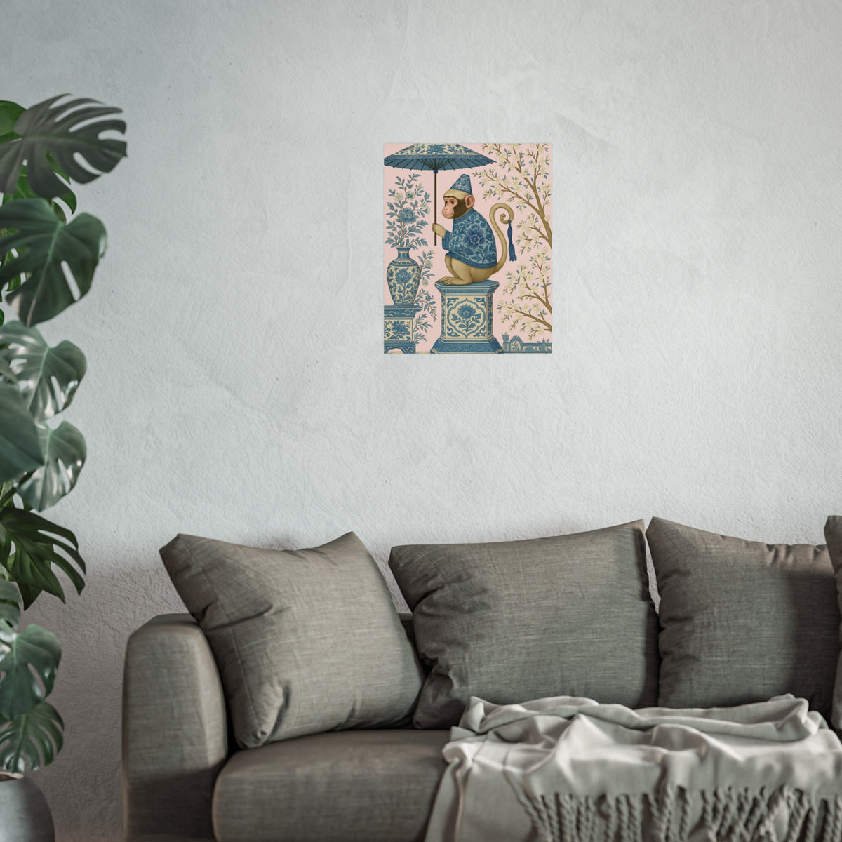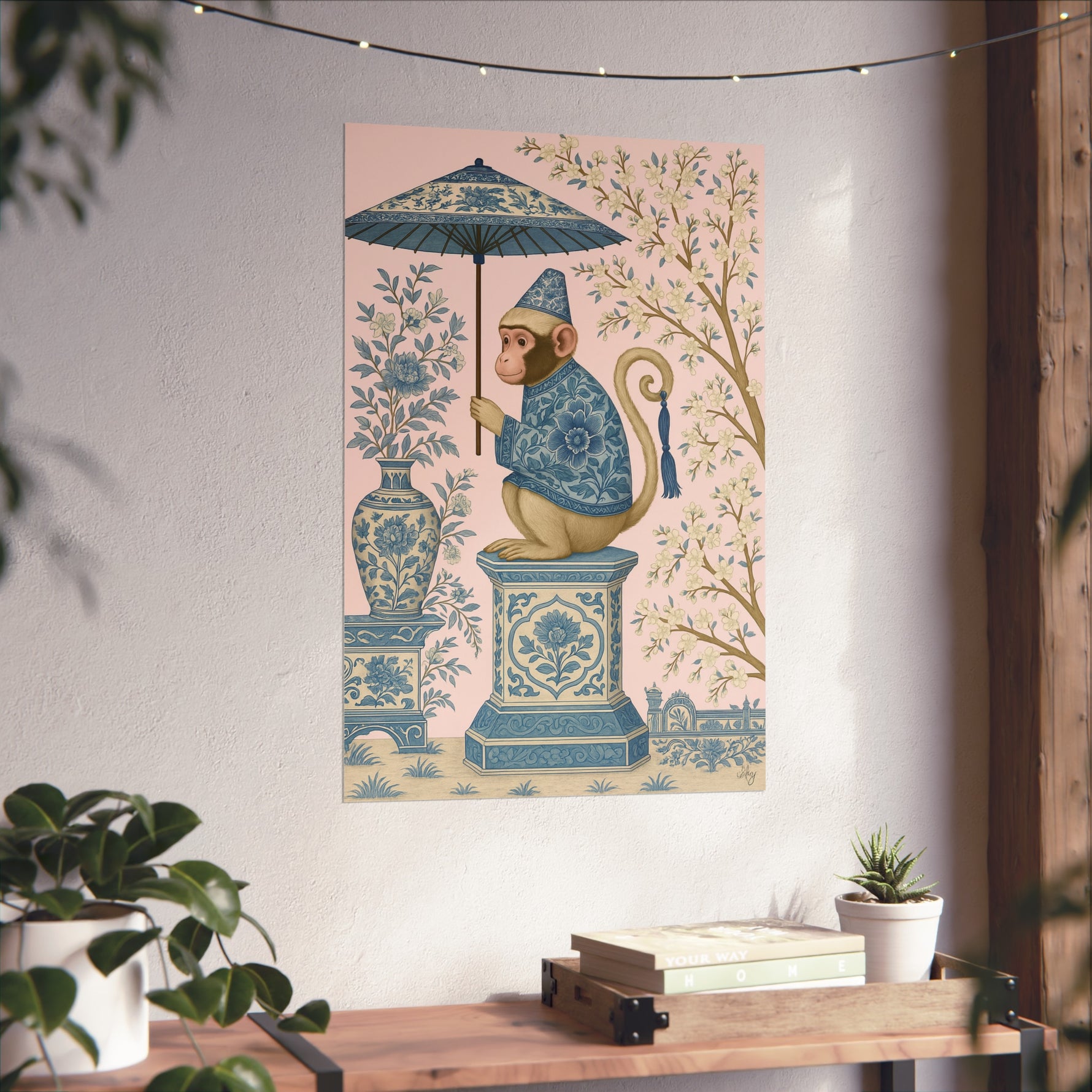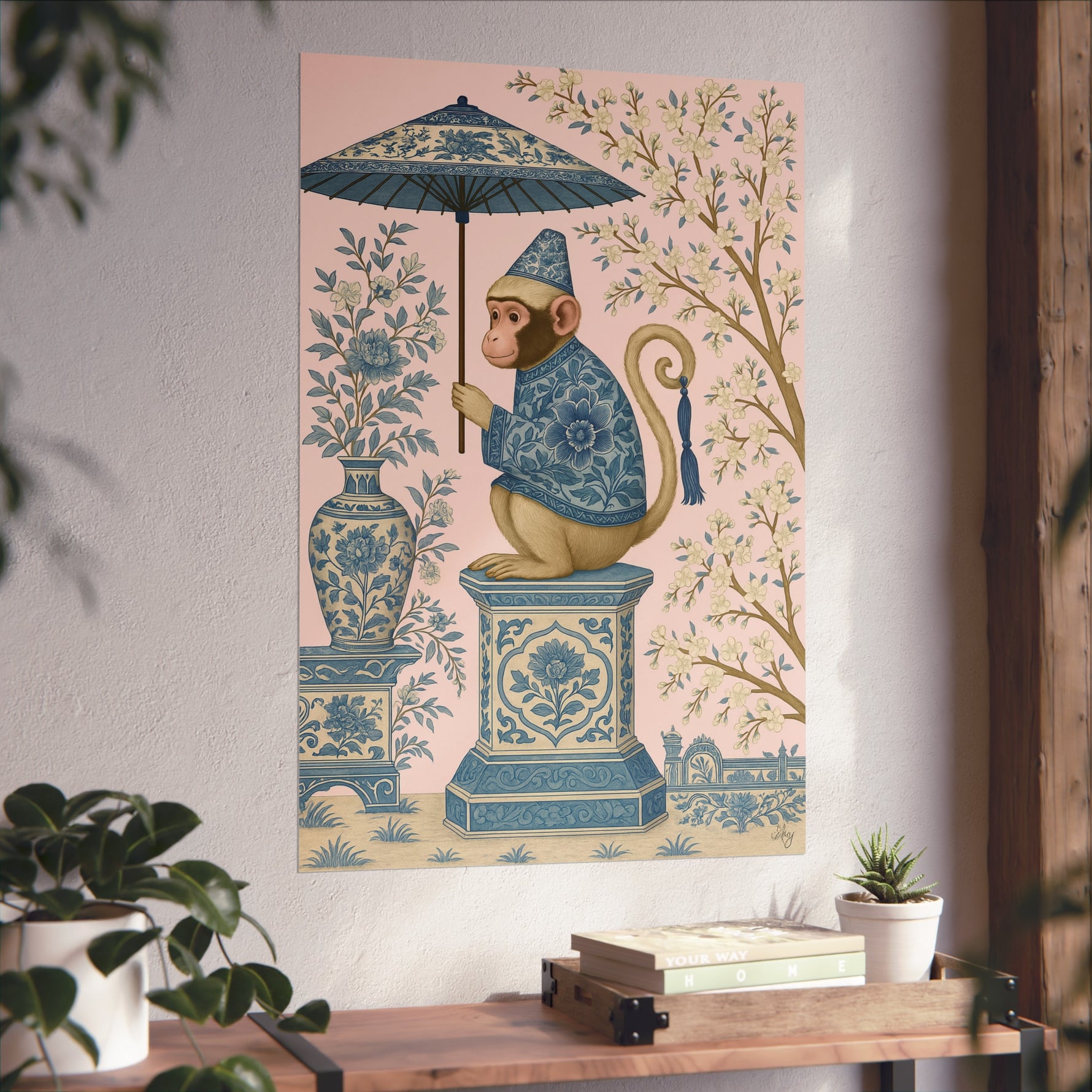 Chinoiserie Blue Monkey on Pedestal Fine Art Poster