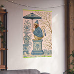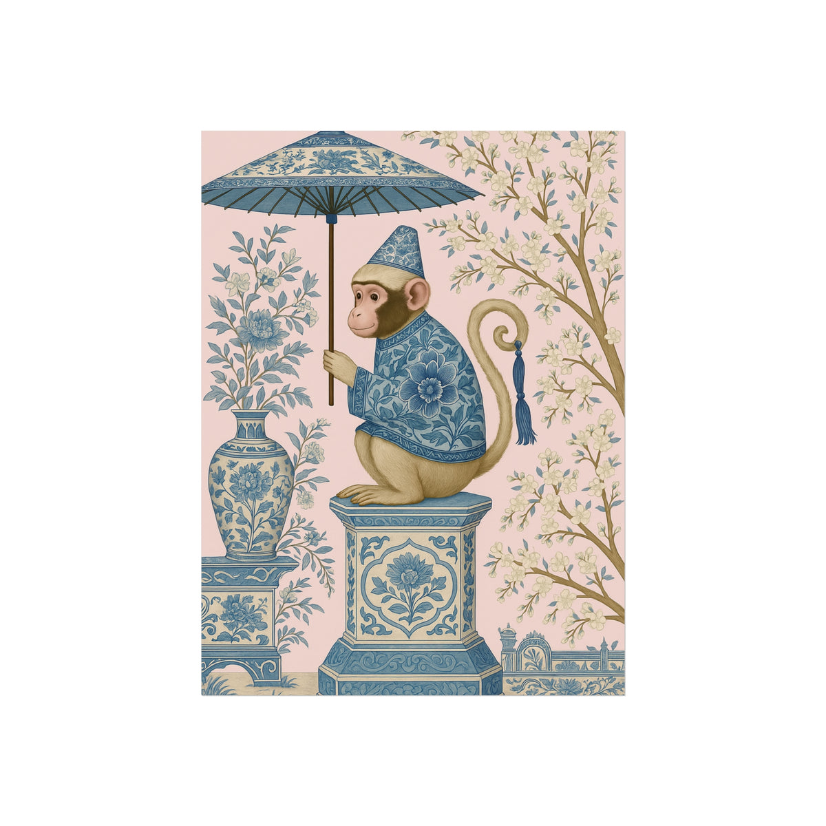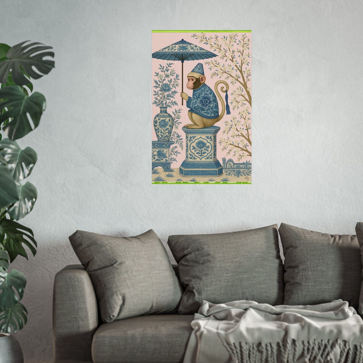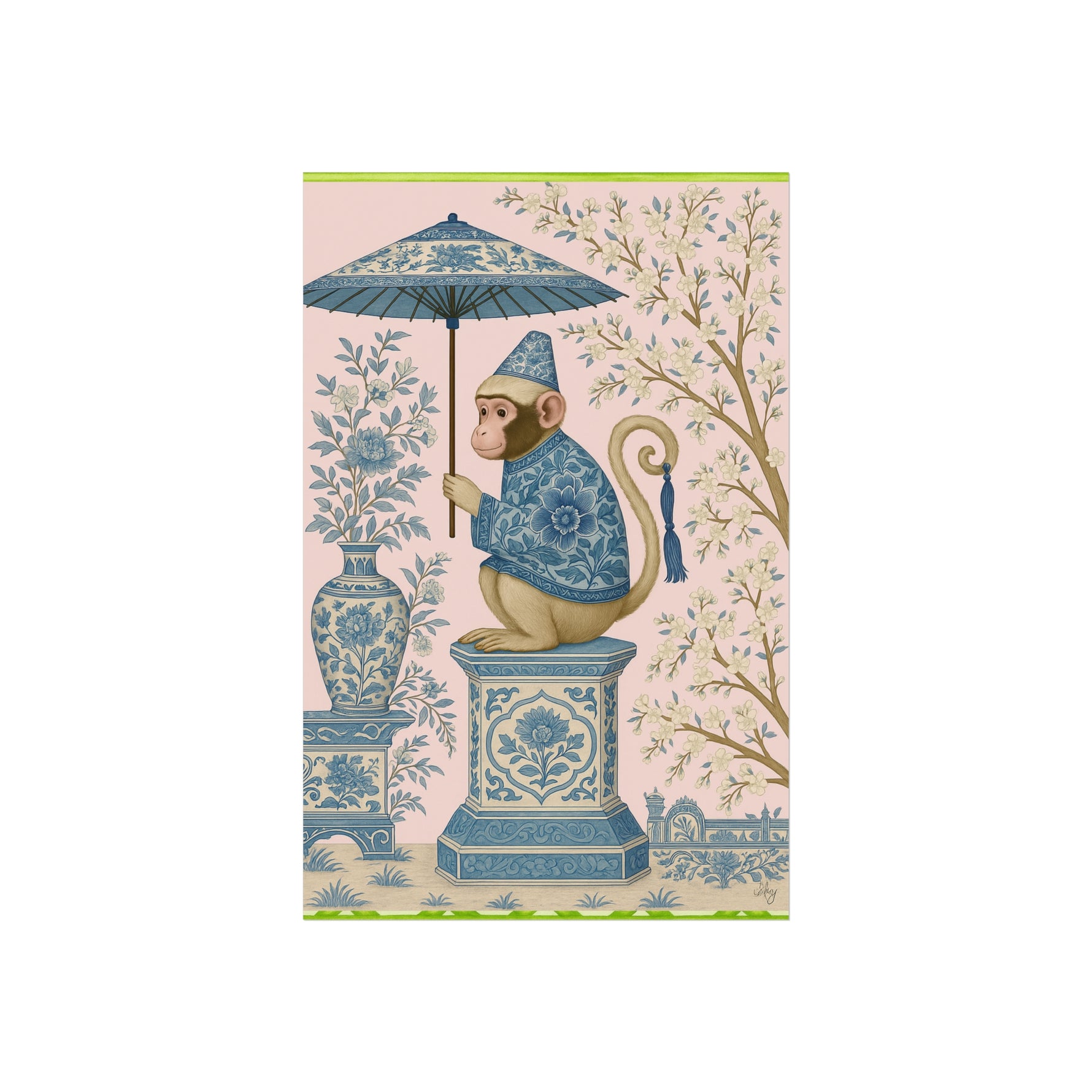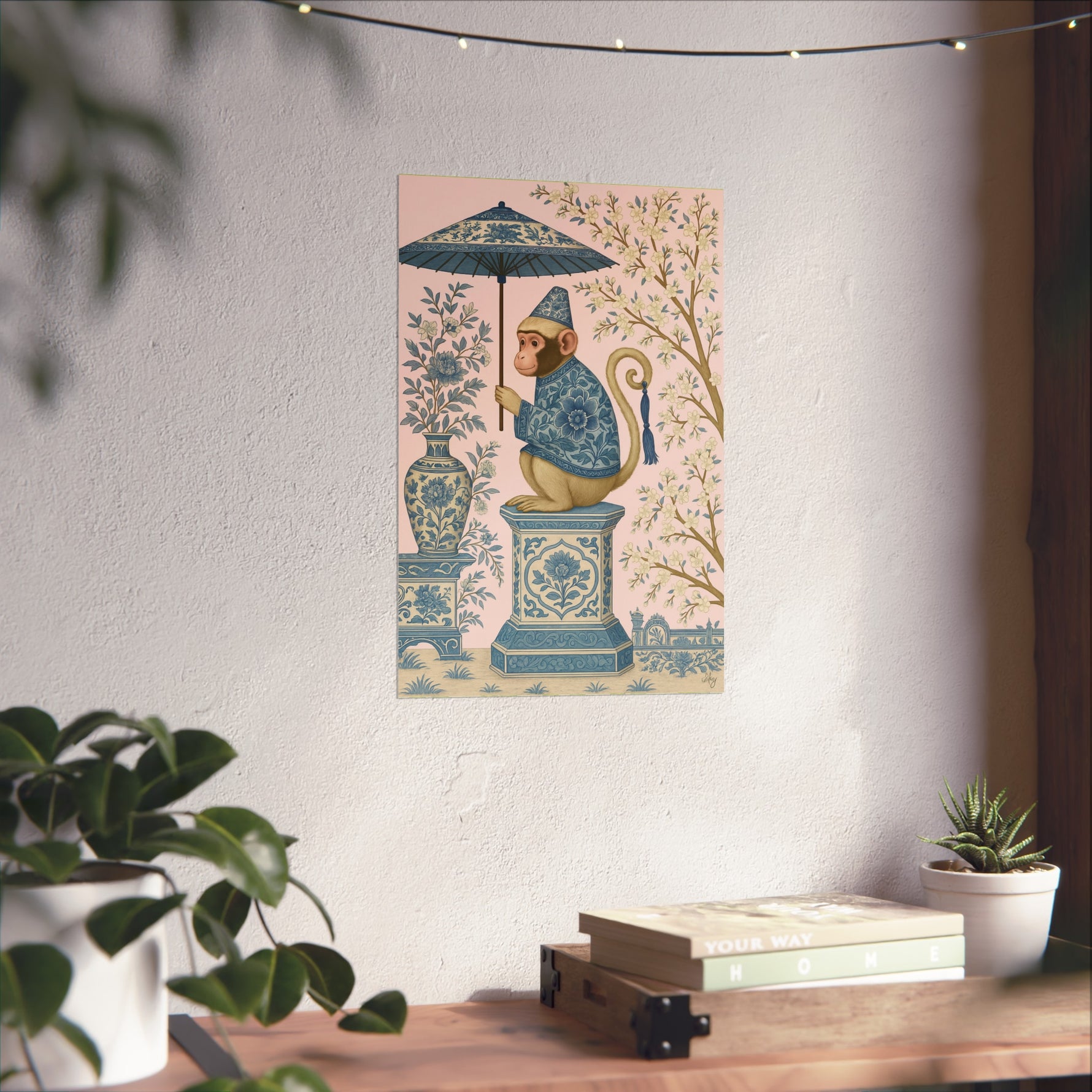 Chinoiserie Blue Monkey on Pedestal Fine Art Poster