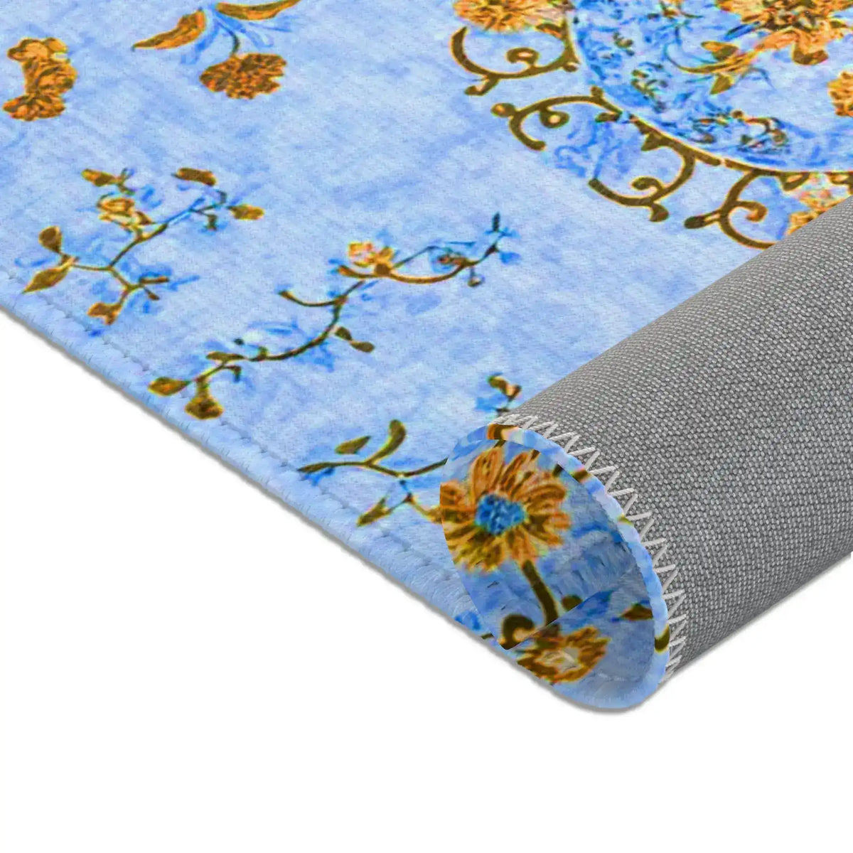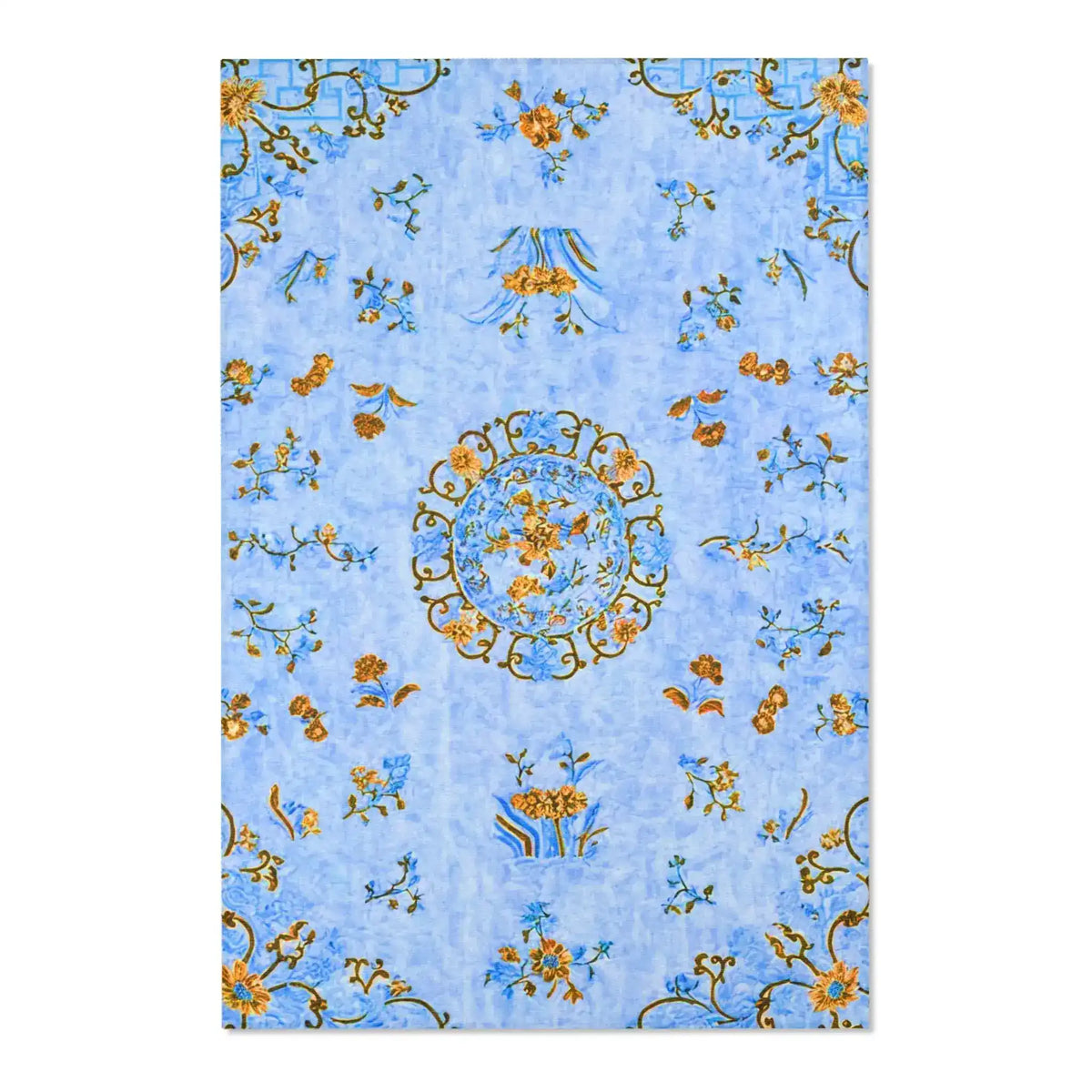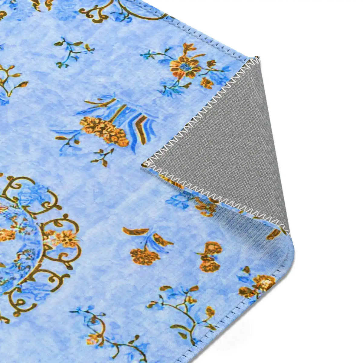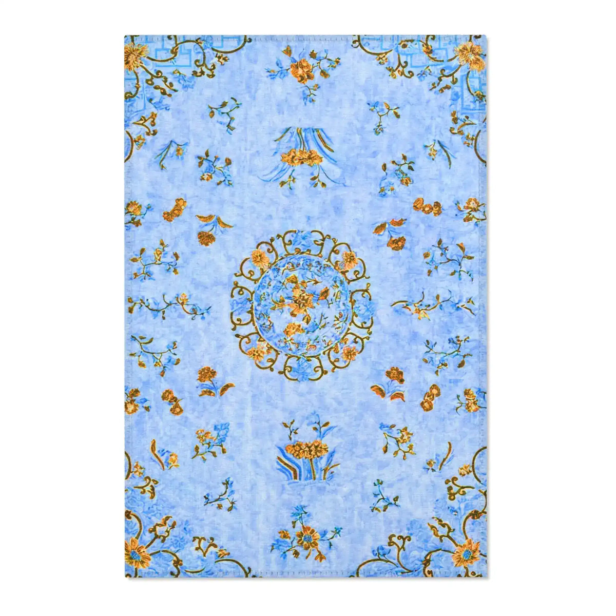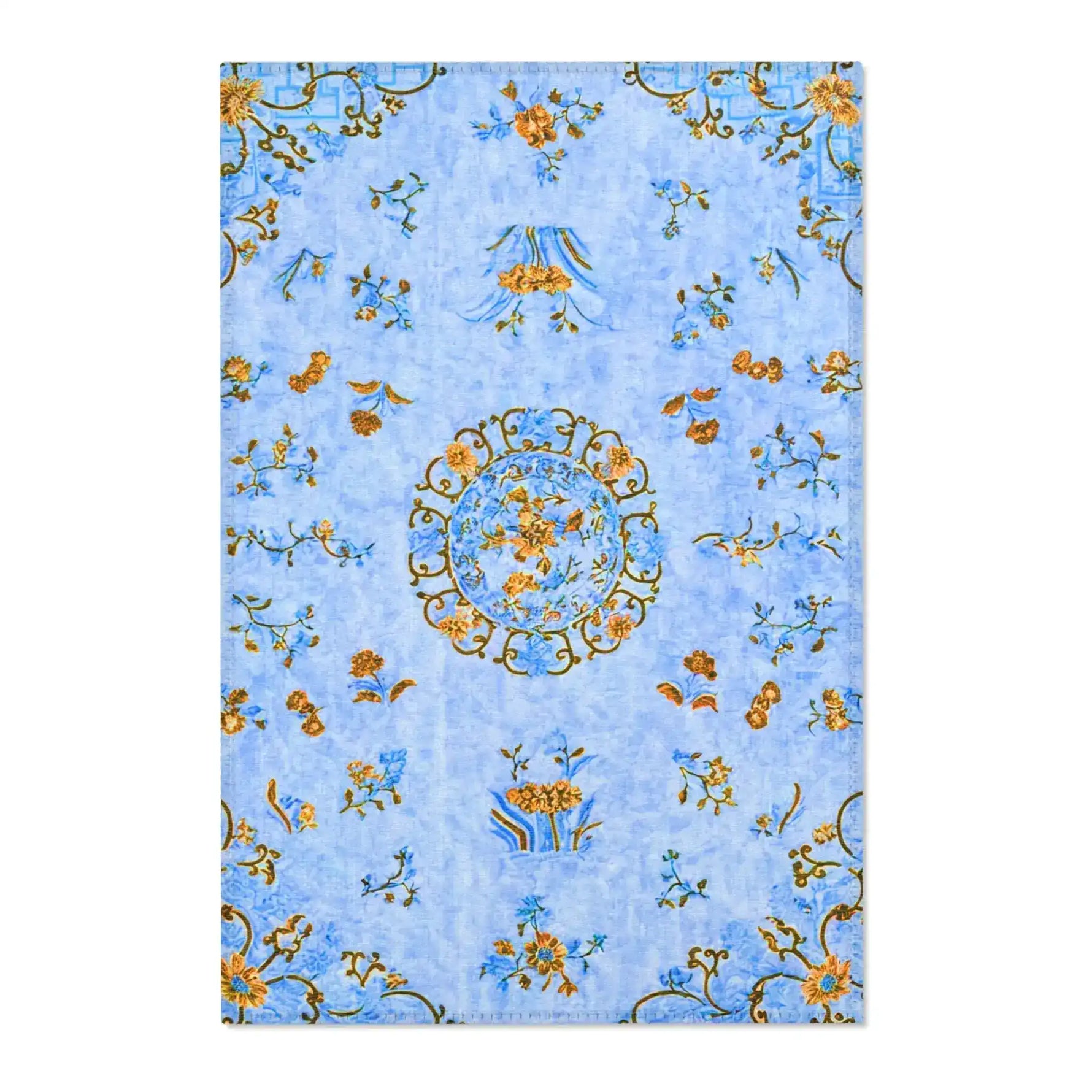 Cornflower Blue and Gold Oriental Floral Accent Rug