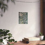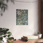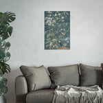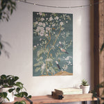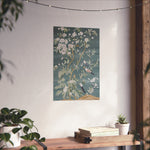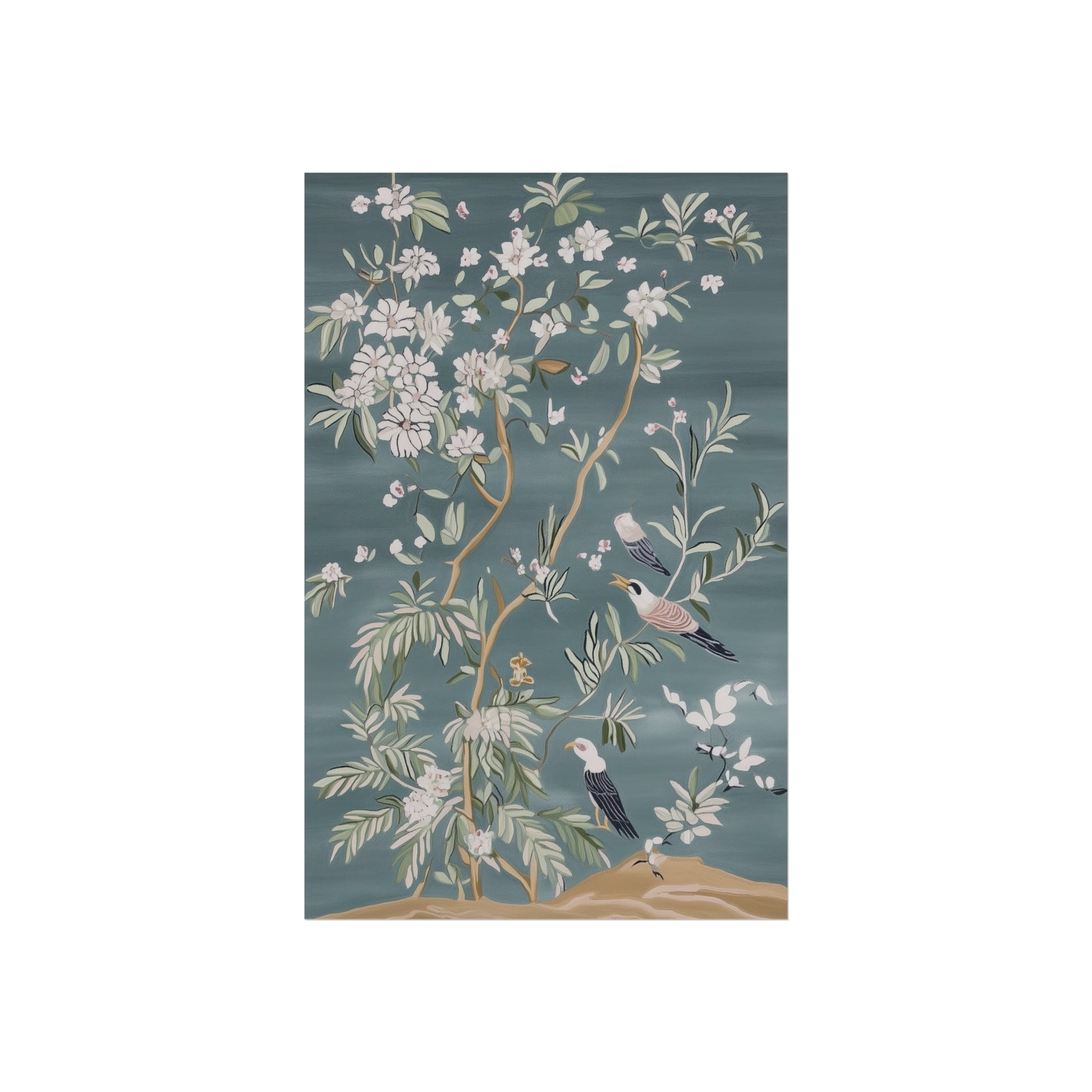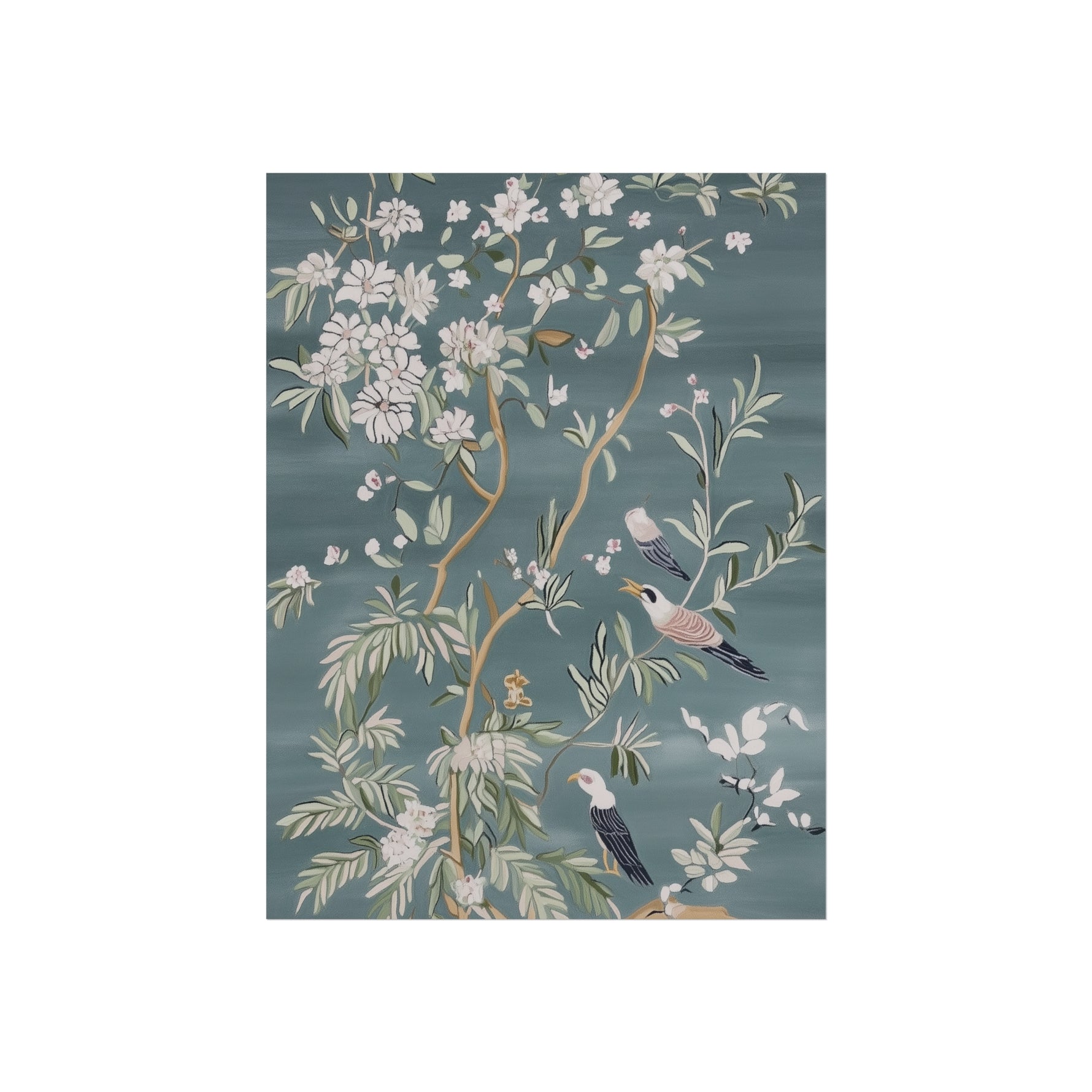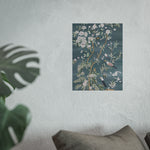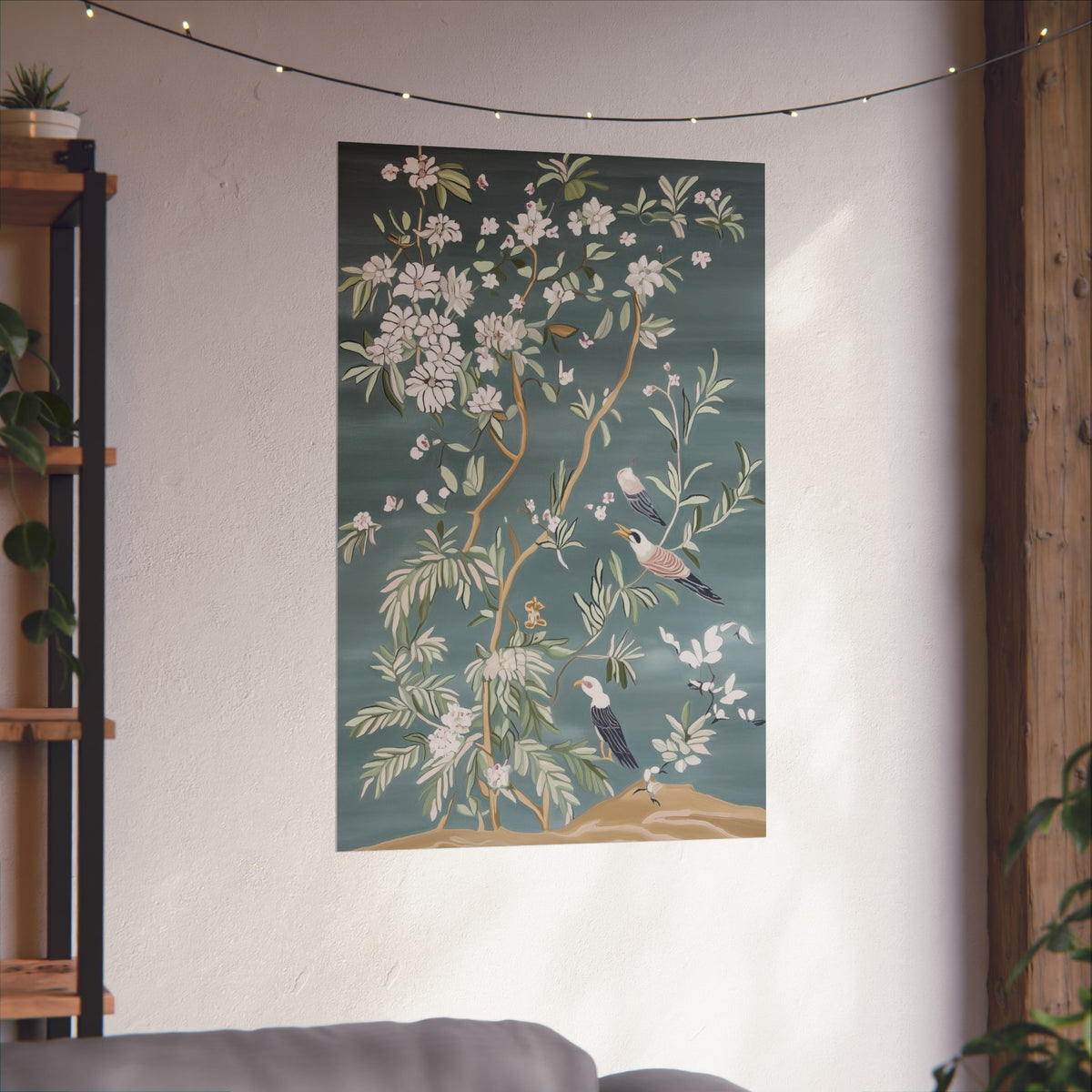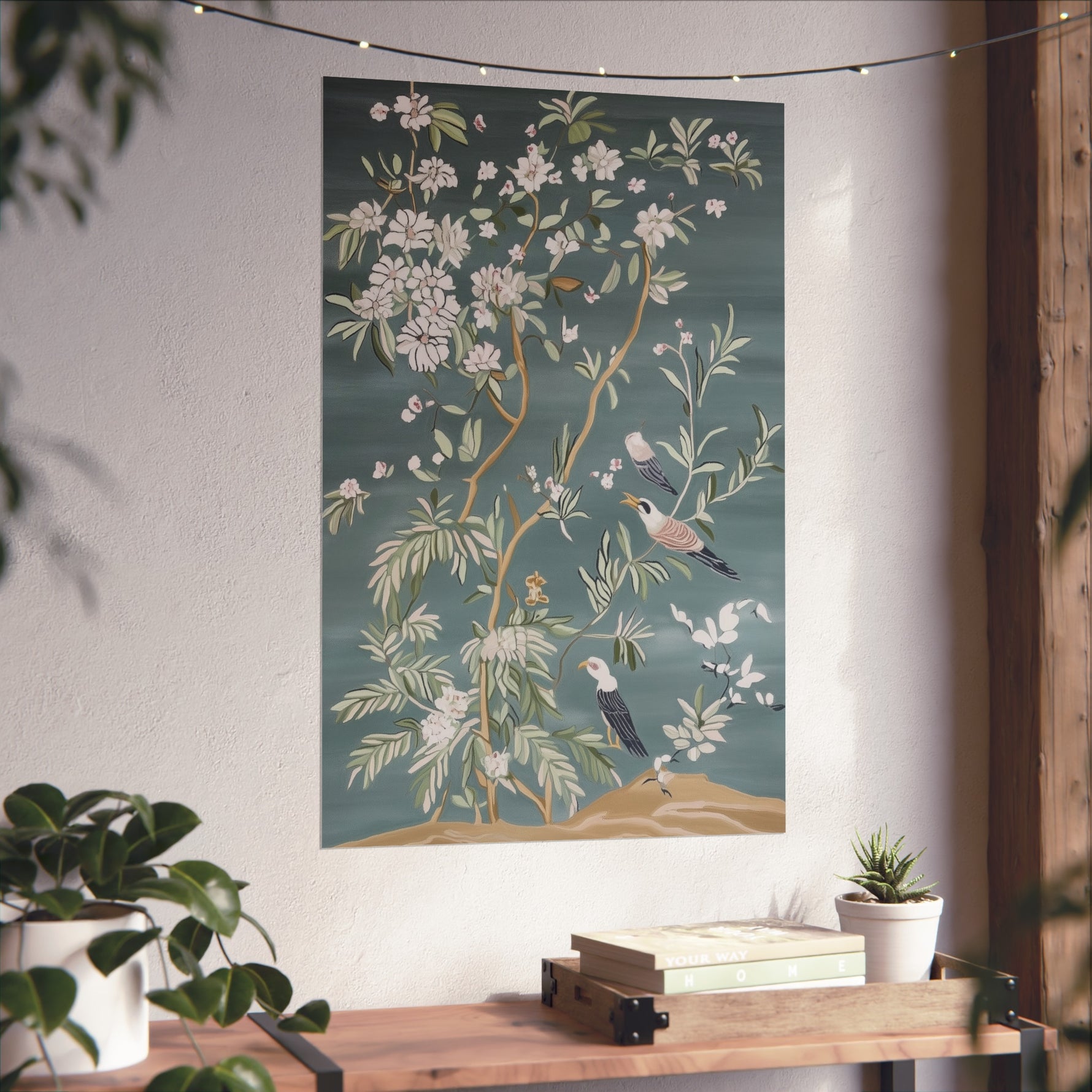 Dark Gray Chinoiserie Birds and Floral Scene Fine Art Poster
