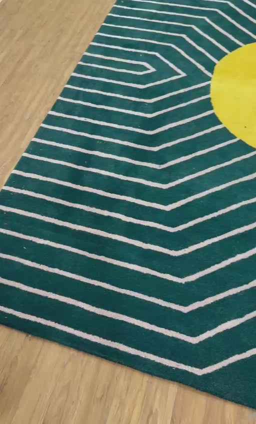Transform your floor into a whimsical work of art with our Dark Teal Gold Circle Geometric Hand Tufted Wool Rug – it's like a dance party for your toes! Crafted with love and precision, this rug adds a pop of personality to any room, making your feet feel fancy and your space fabulous.