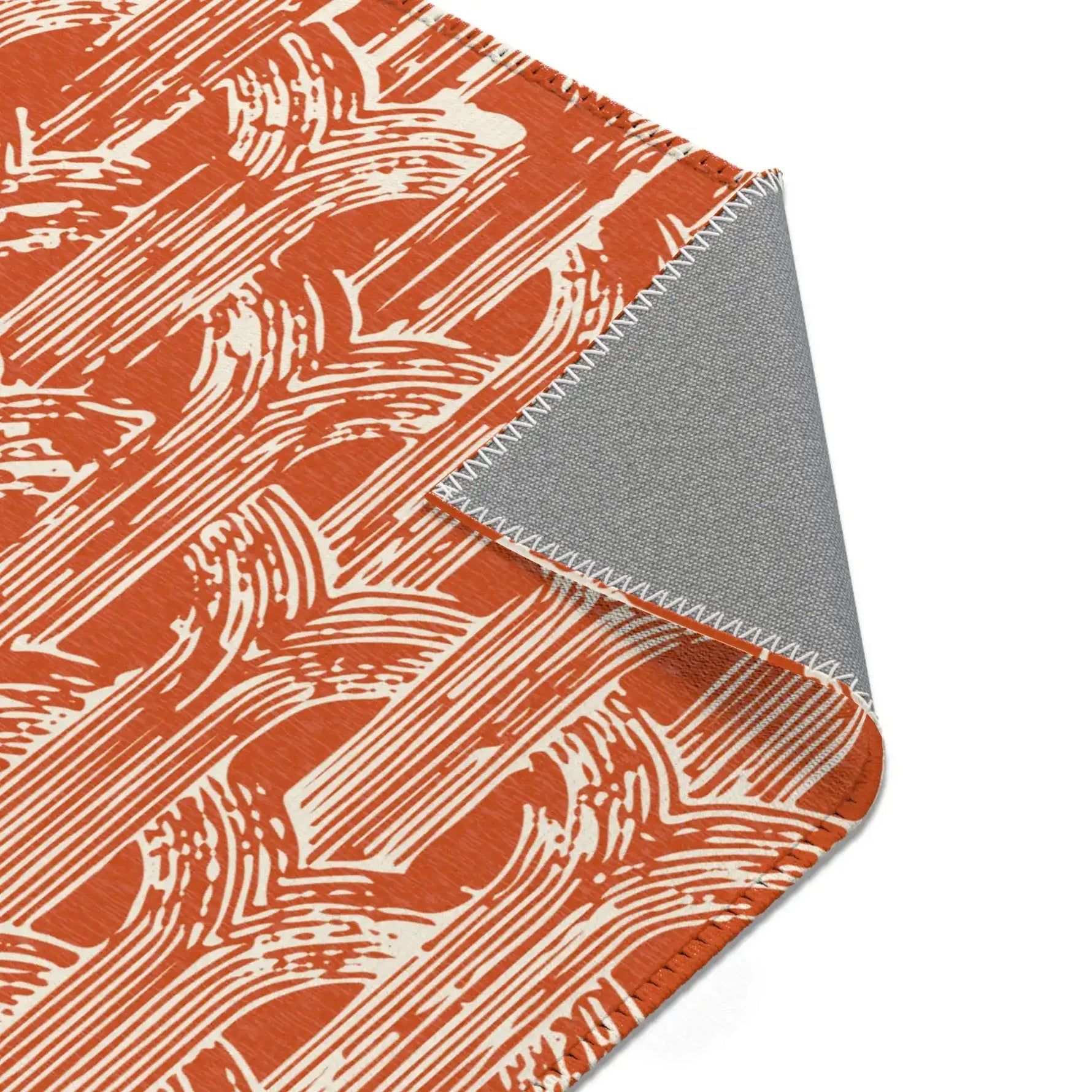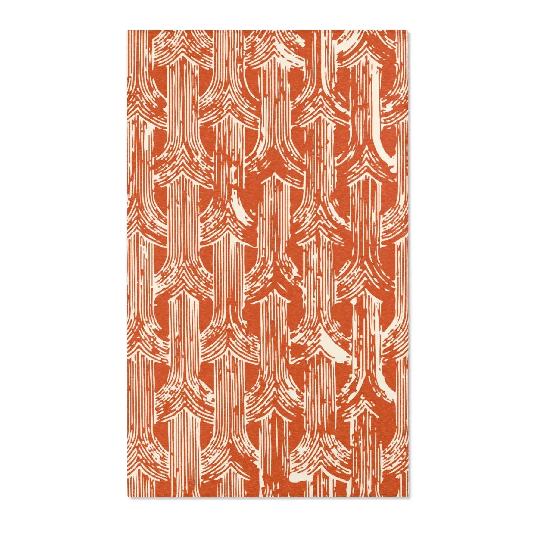 This accent rug features a bold, geometric sunburst design in black, red, and beige. The pattern radiates energy and vibrance, making it a striking addition to any room. The contrasting colors and dynamic shapes create a visually captivating piece that effortlessly enhances modern and artistic home decor.