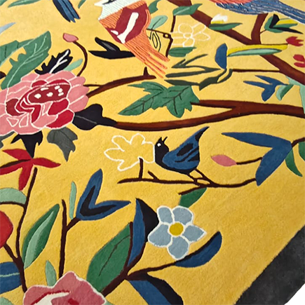 The Floral Flock Harmony Tufted Rug will help you to bring natural beauty inside. With a bright pattern of tiny birds and blossoming flowers, this rug brings a happy and refined touch to any room. Made from a rich mix of fine New Zealand wool and viscose, hand-tufted, it provides a gentle, velvety feel with long-lasting resilience. The vibrant, naturalistic design is perfect for warming and charming your house.