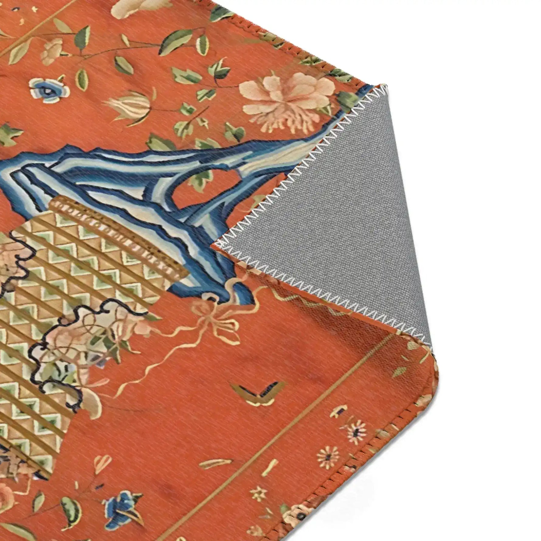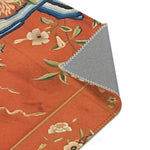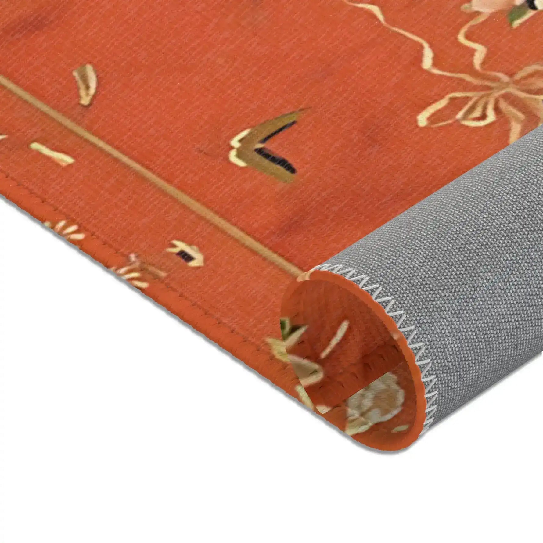 This accent rug features a bold, geometric sunburst design in black, red, and beige. The pattern radiates energy and vibrance, making it a striking addition to any room. The contrasting colors and dynamic shapes create a visually captivating piece that effortlessly enhances modern and artistic home decor.