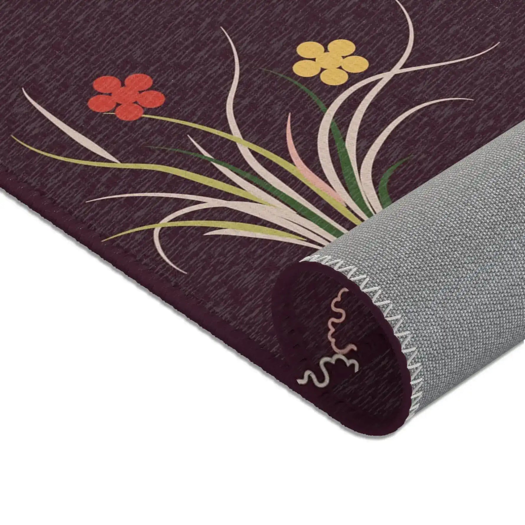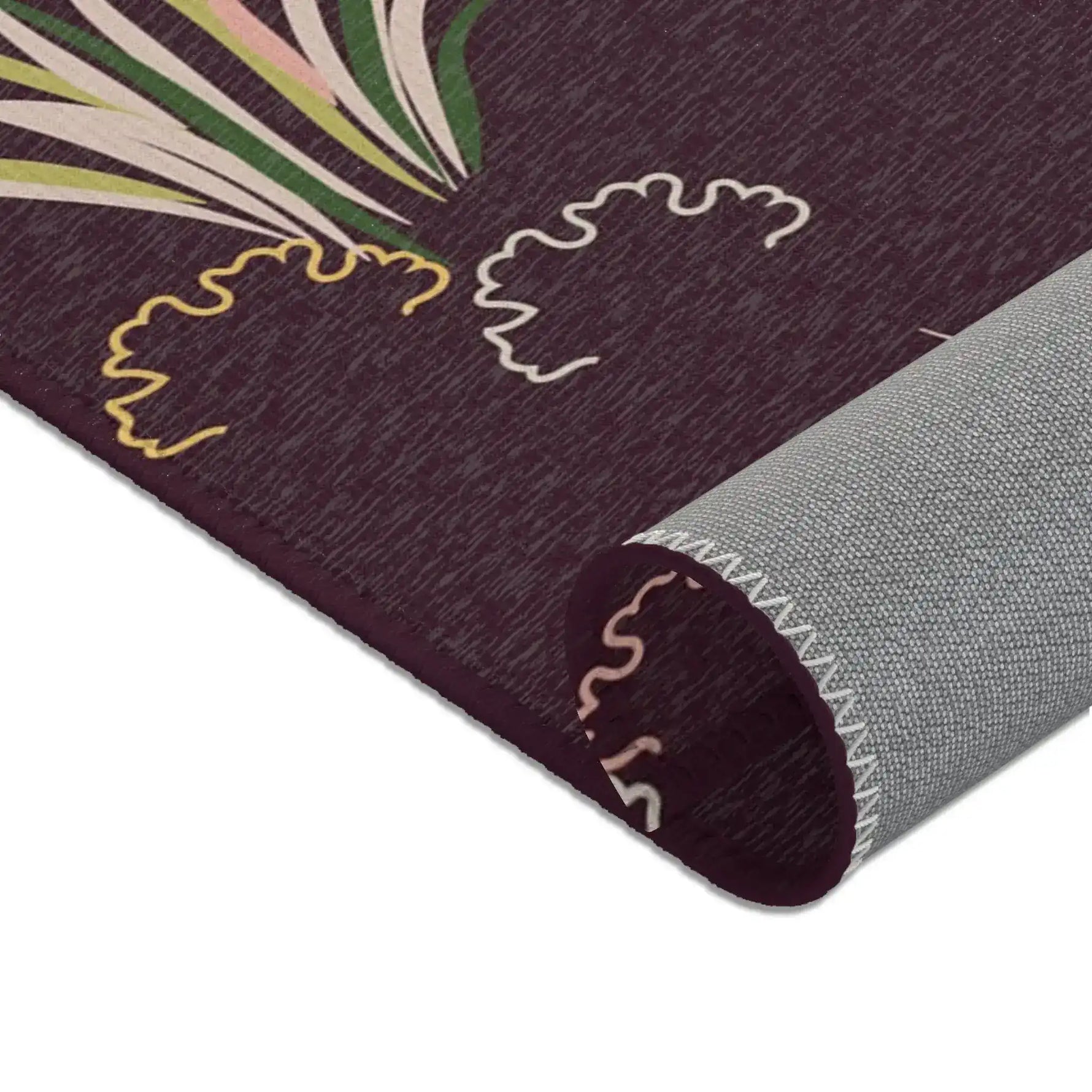 This accent rug features a bold, geometric sunburst design in black, red, and beige. The pattern radiates energy and vibrance, making it a striking addition to any room. The contrasting colors and dynamic shapes create a visually captivating piece that effortlessly enhances modern and artistic home decor.
