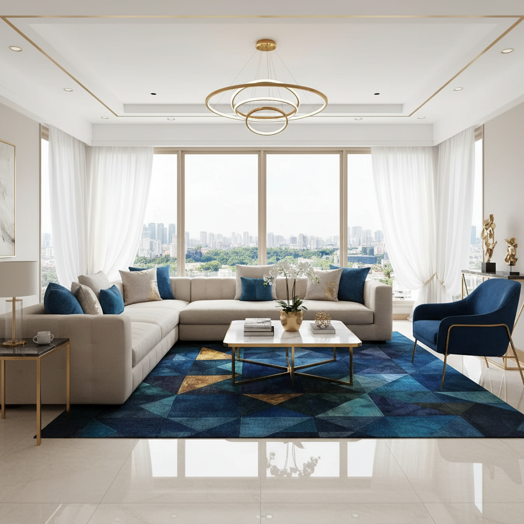 The Geometric Getaway Hand-Tufted Wool Rug will make your room look bold and up-to-date. Very skilled people in India use only the best New Zealand wool to make this rug. A lot of different colors and beautiful geometric shapes make it up. It's great for places with a lot of foot traffic because it's soft and lasts a long time. The recycled cotton backing keeps it stable and safe. Eco-friendly chemicals were used to dye this rug, so the color will last. It looks good and is good for the earth.