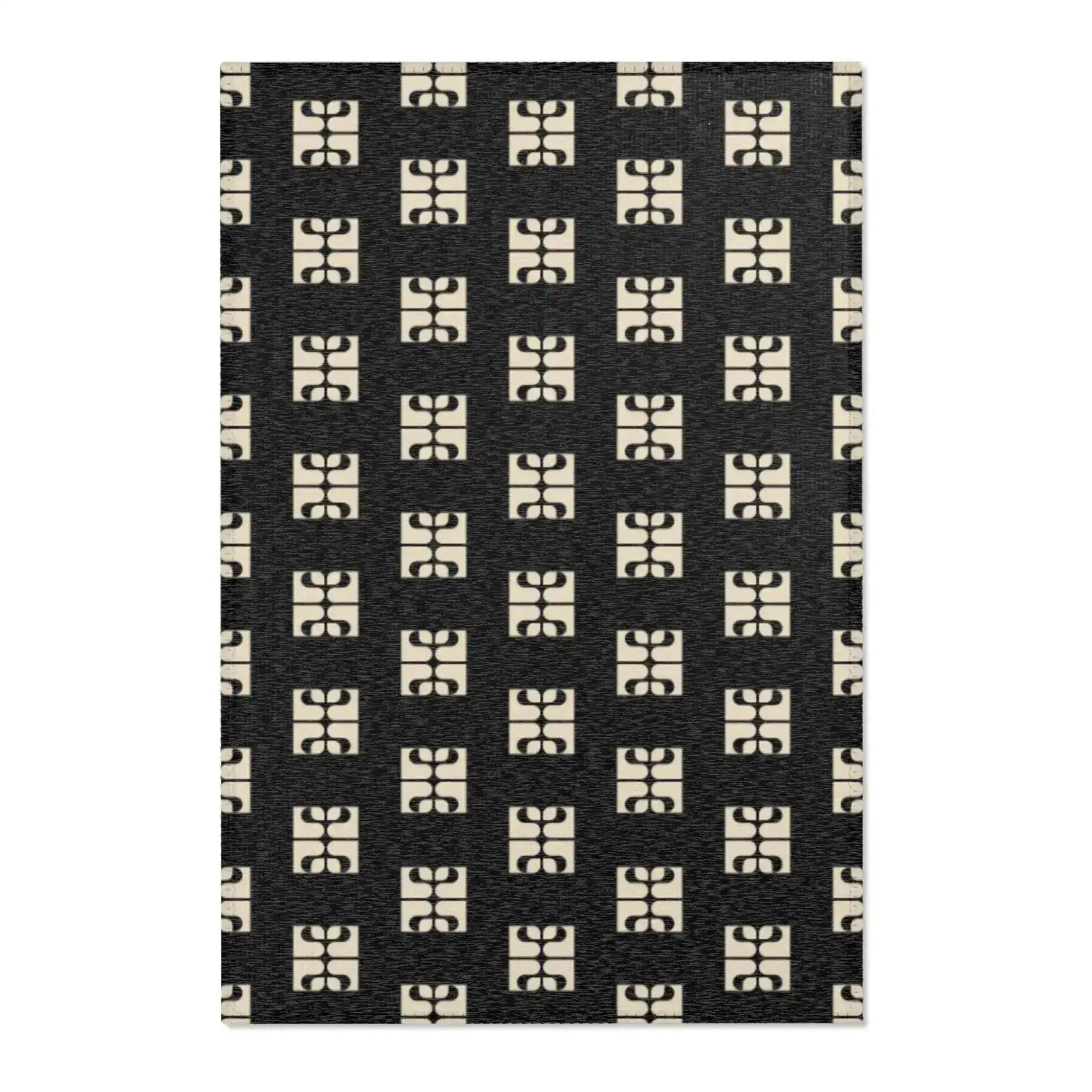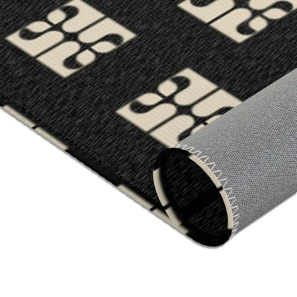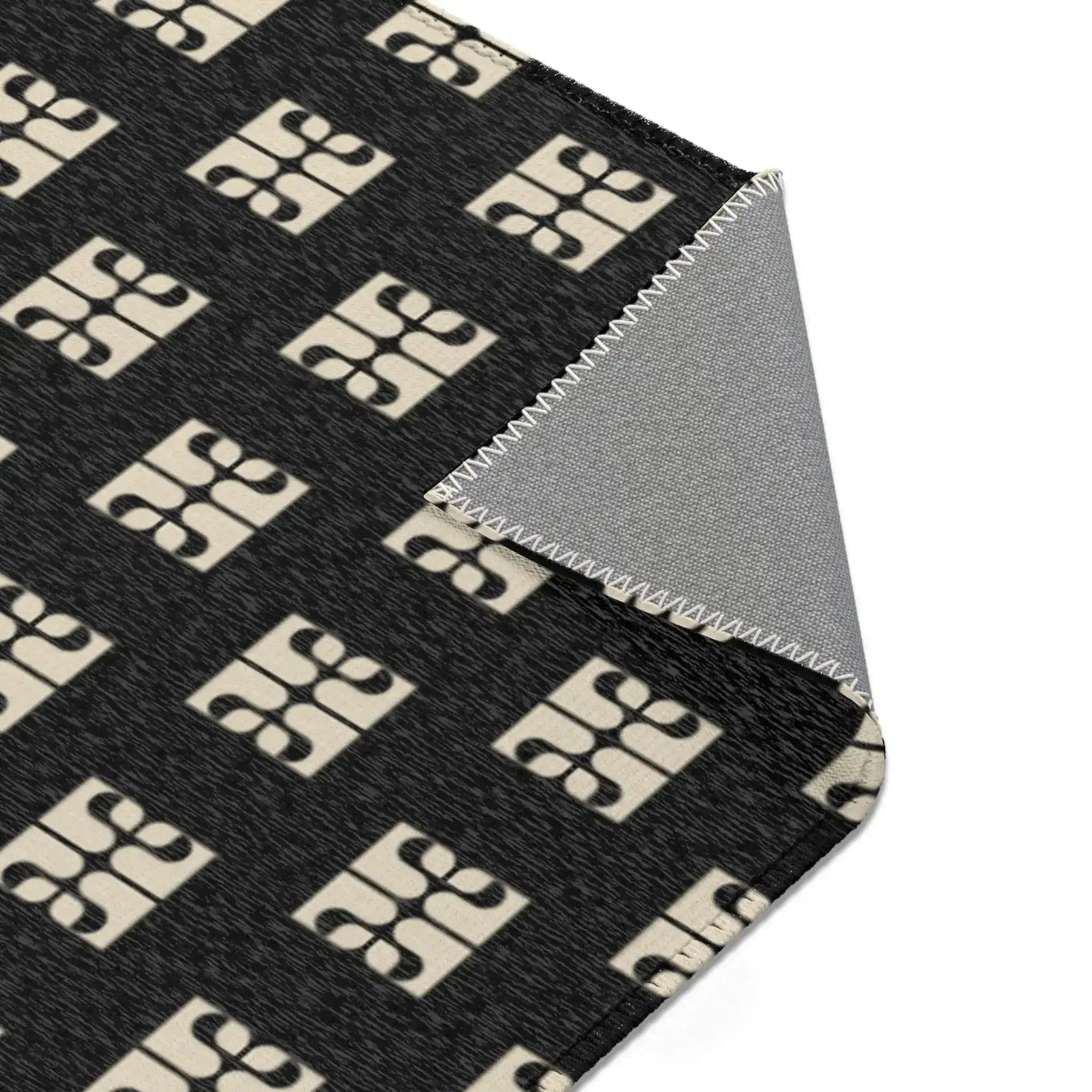 Geometric Retro Black & Beige Accent Rug