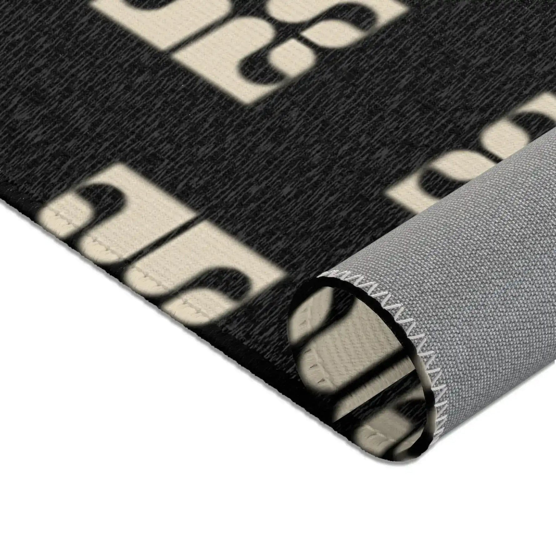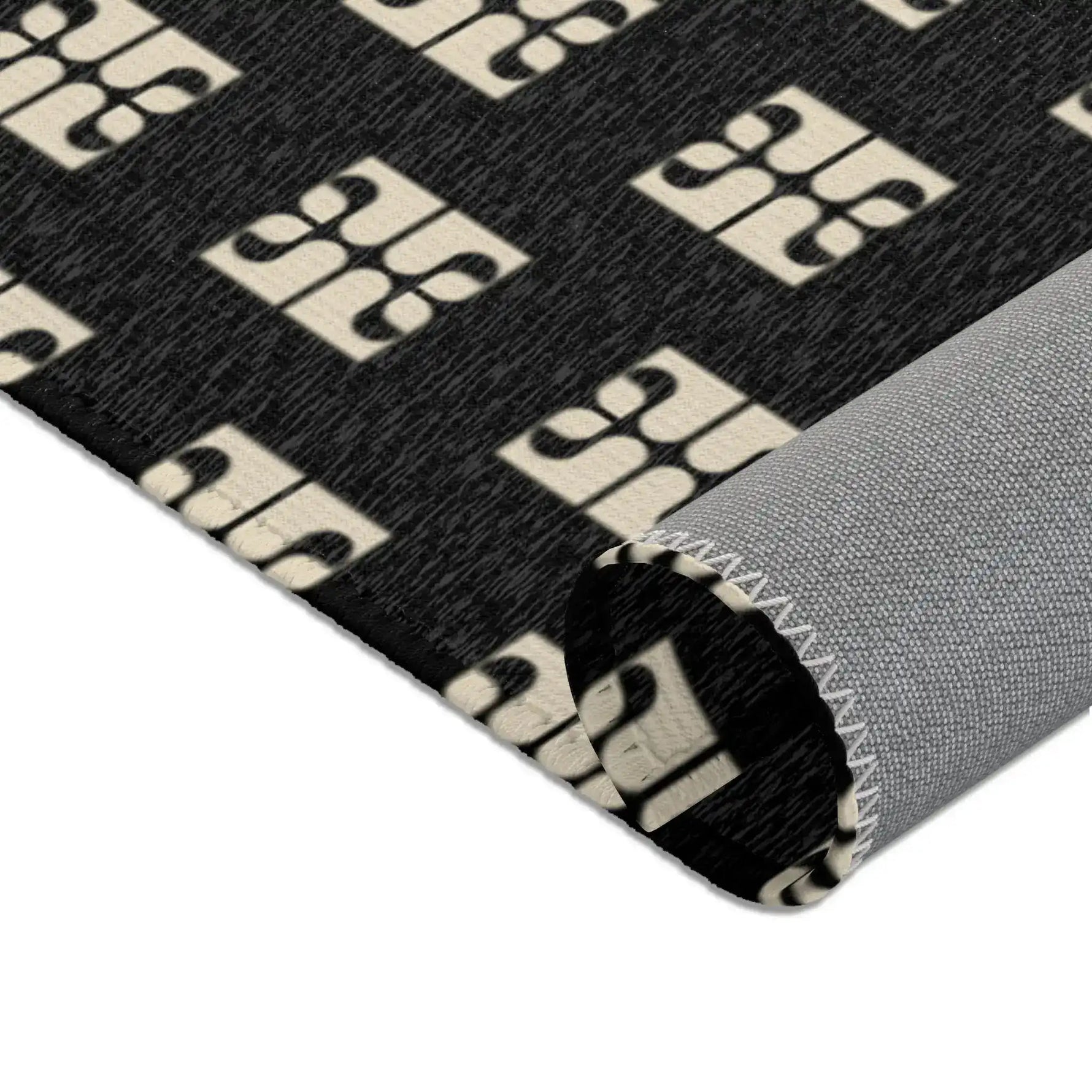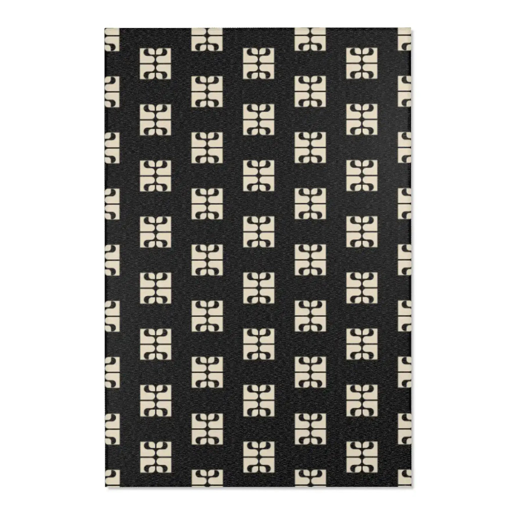 Geometric Retro Black & Beige Accent Rug