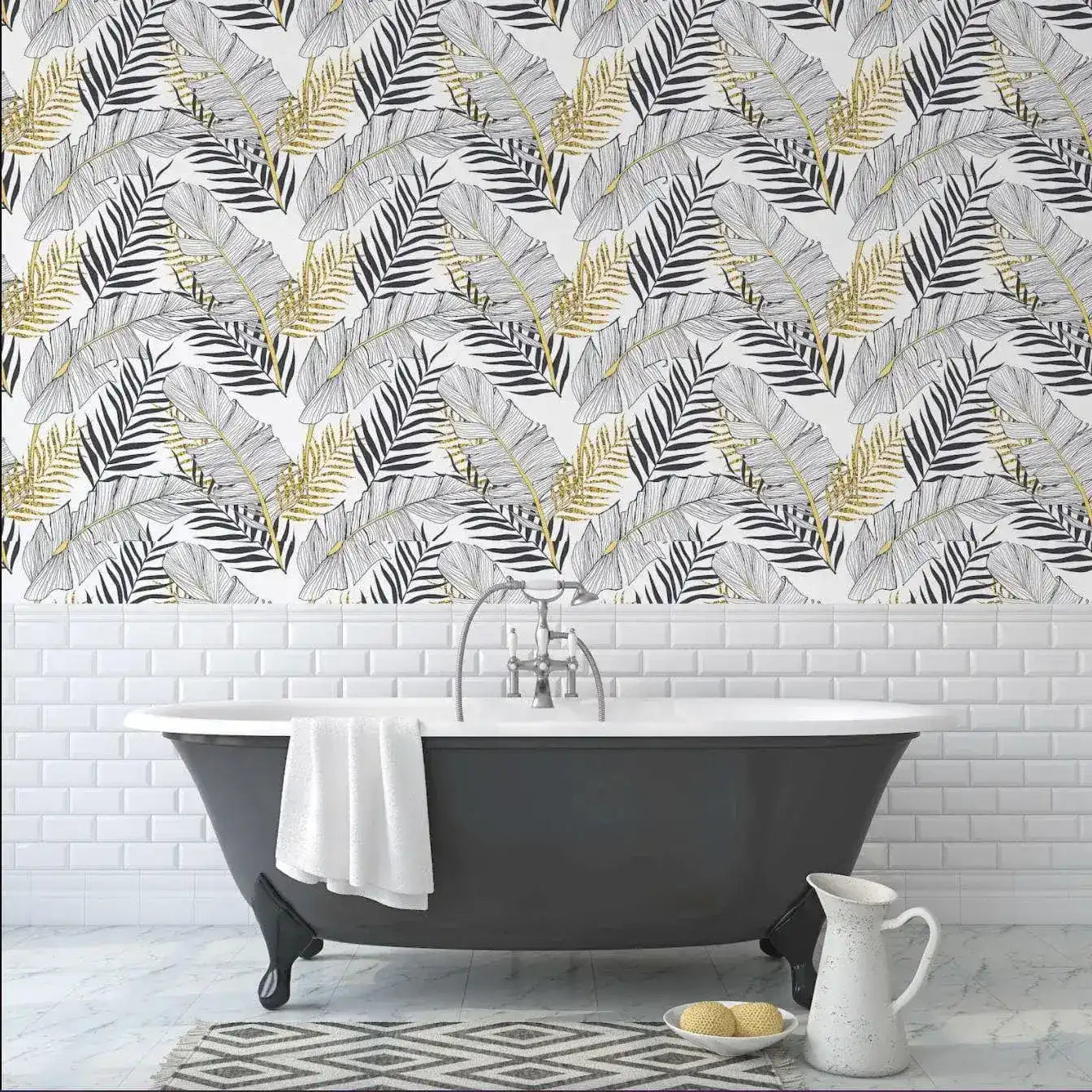 Gold Contrast Black Palm Leaves Wallpaper