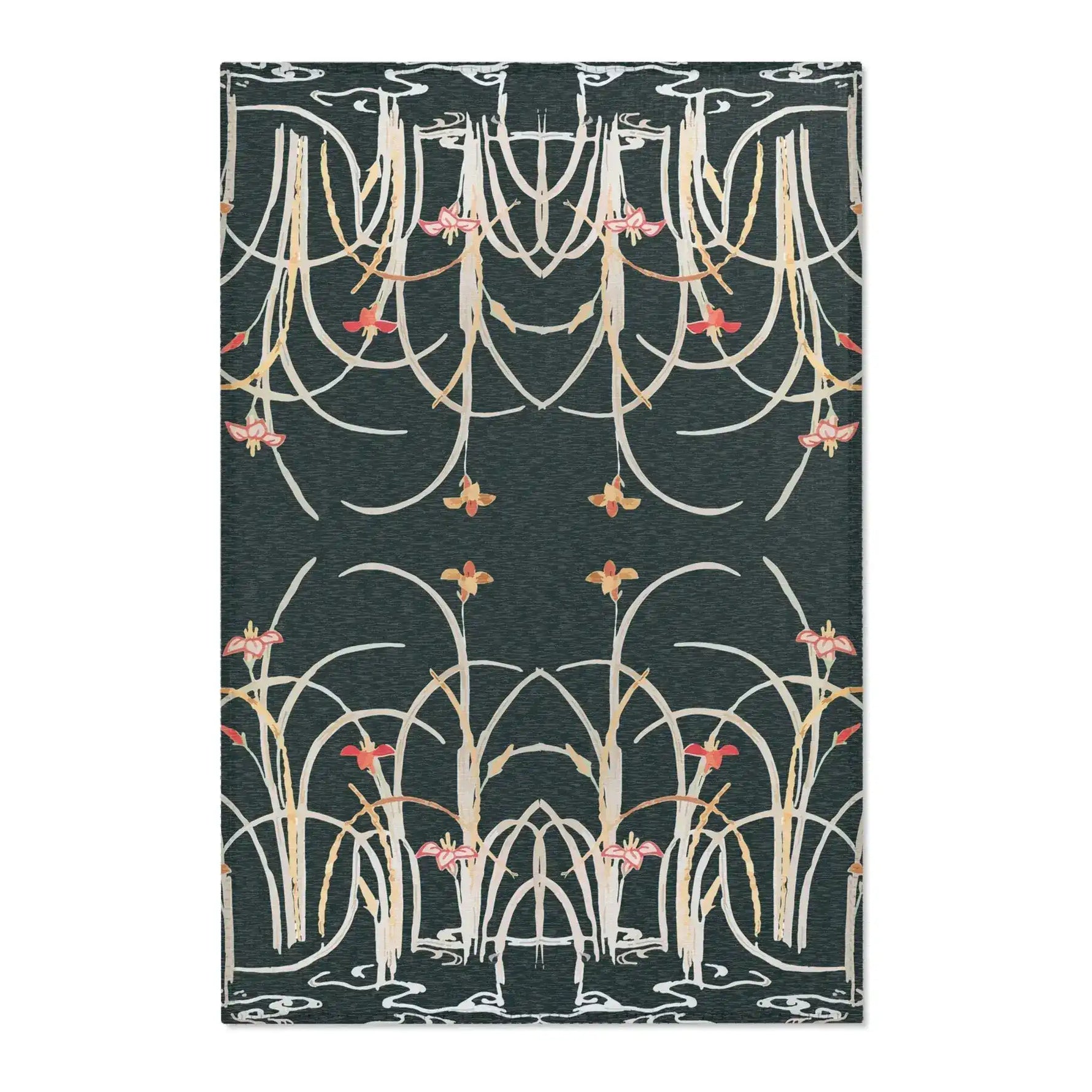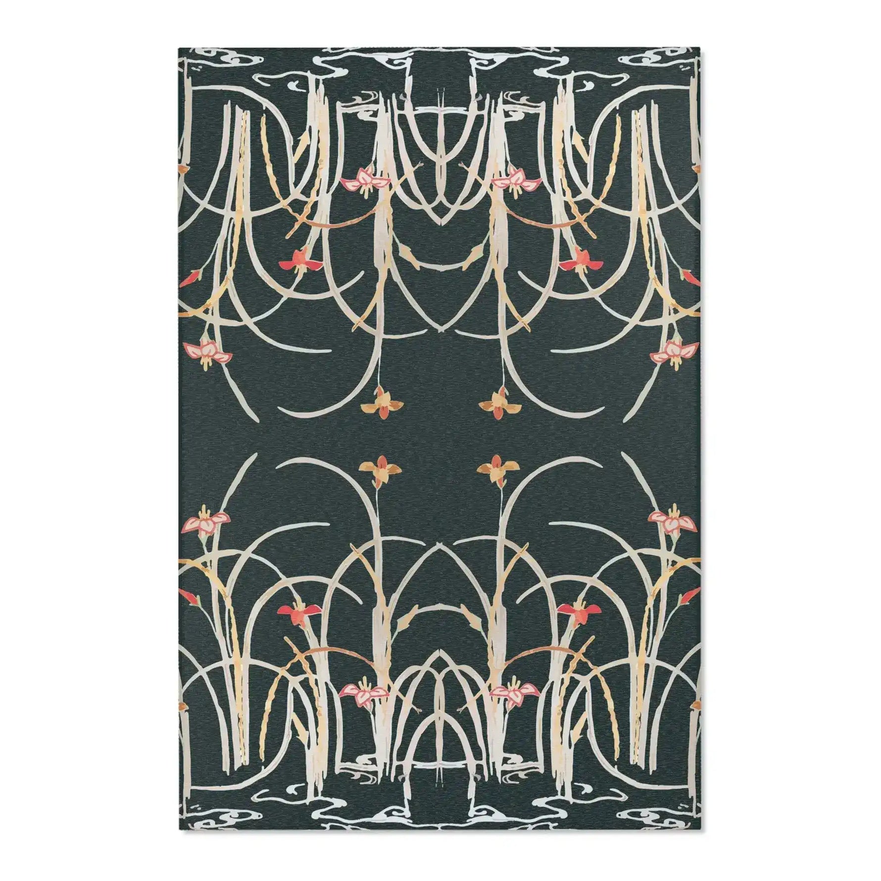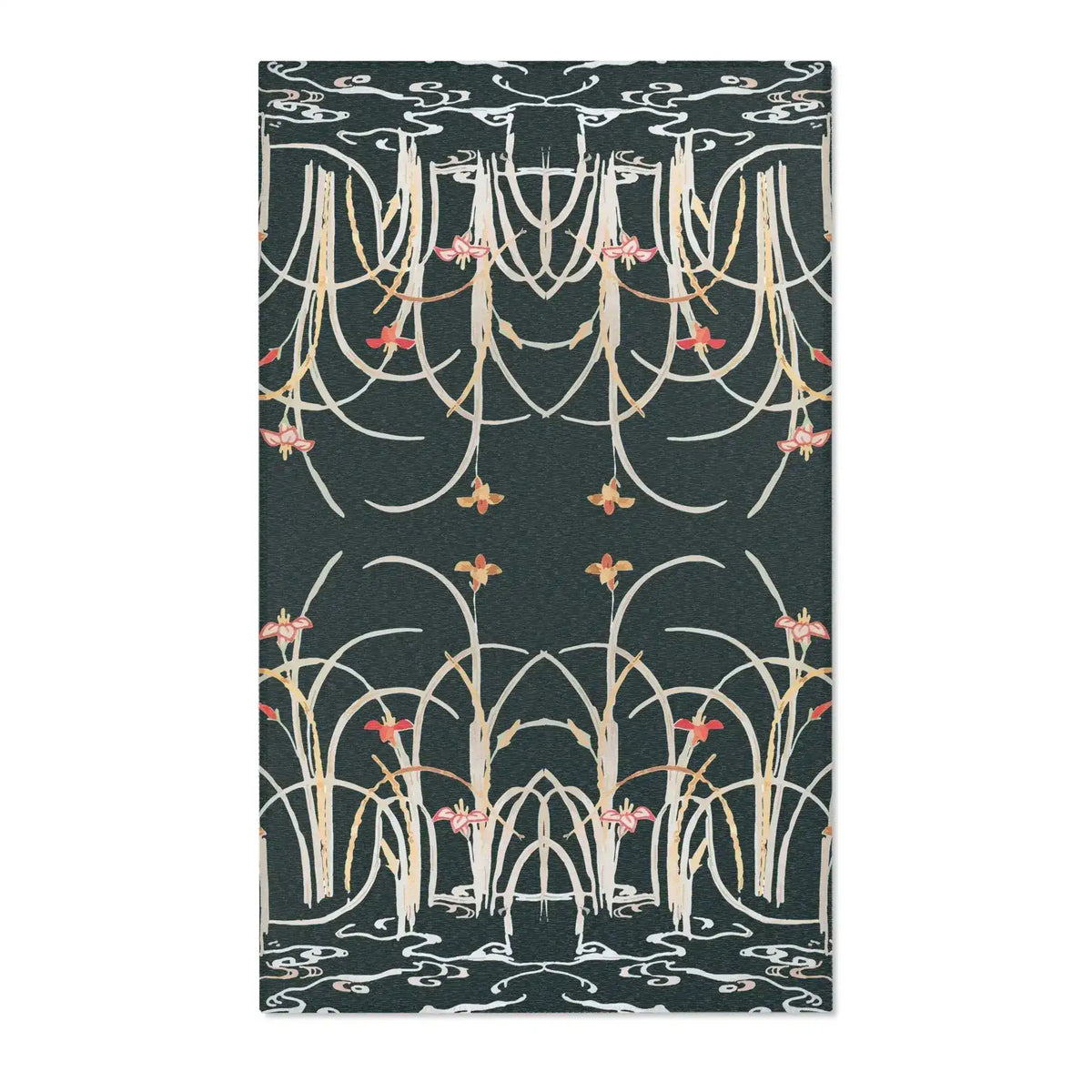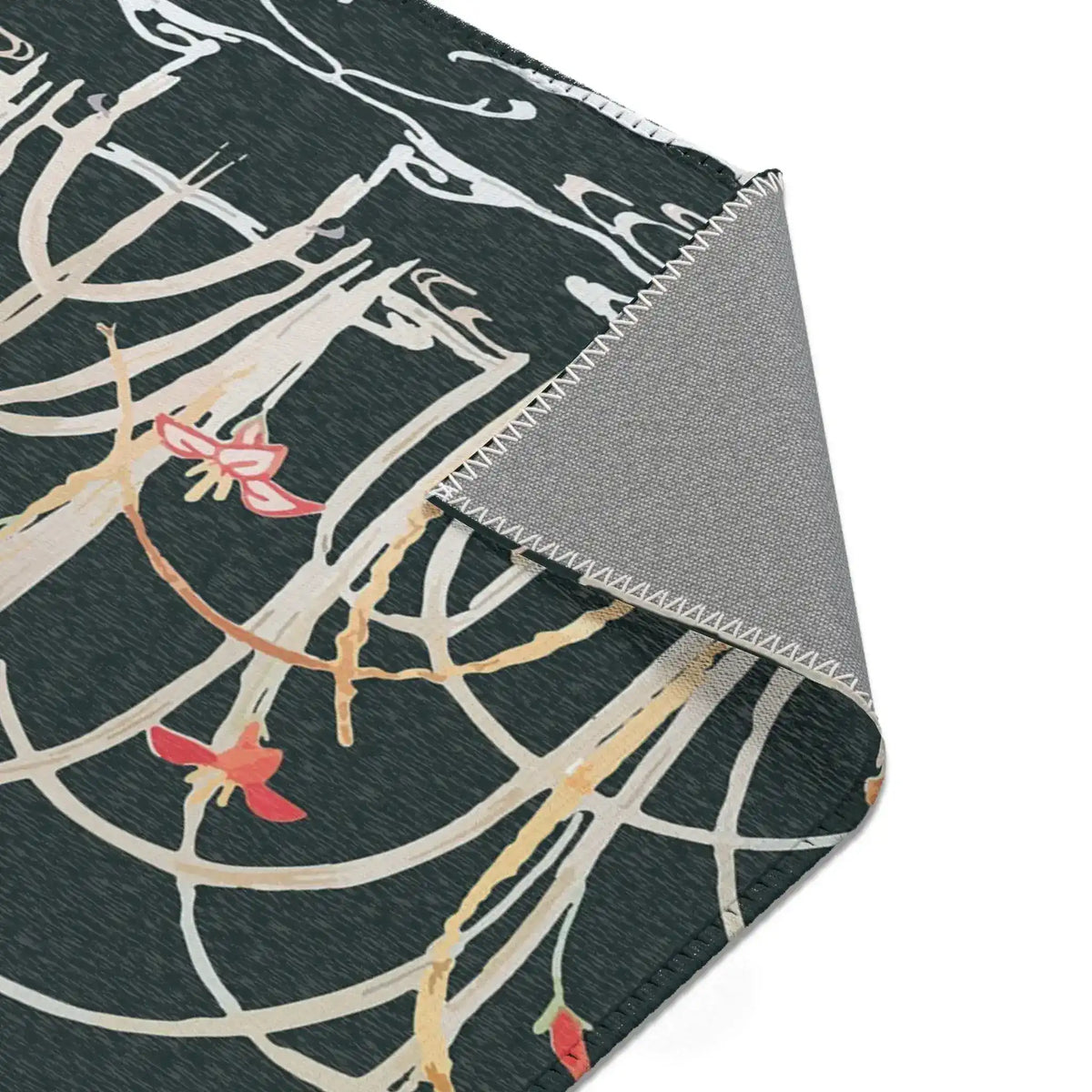 This accent rug features a bold, geometric sunburst design in black, red, and beige. The pattern radiates energy and vibrance, making it a striking addition to any room. The contrasting colors and dynamic shapes create a visually captivating piece that effortlessly enhances modern and artistic home decor.