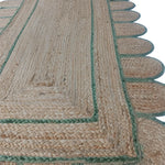 Handmade Olive Green Scalloped Border Jute Rug 4 x 6 ft