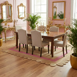Our Handmade Pink Scalloped Border Jute Rug is kid and pet friendly, making it suitable for high-traffic areas such as your living room, dining room, kitchen, office, and entryway.