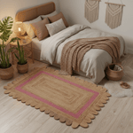 Handmade Pink Scalloped Border Jute Rug