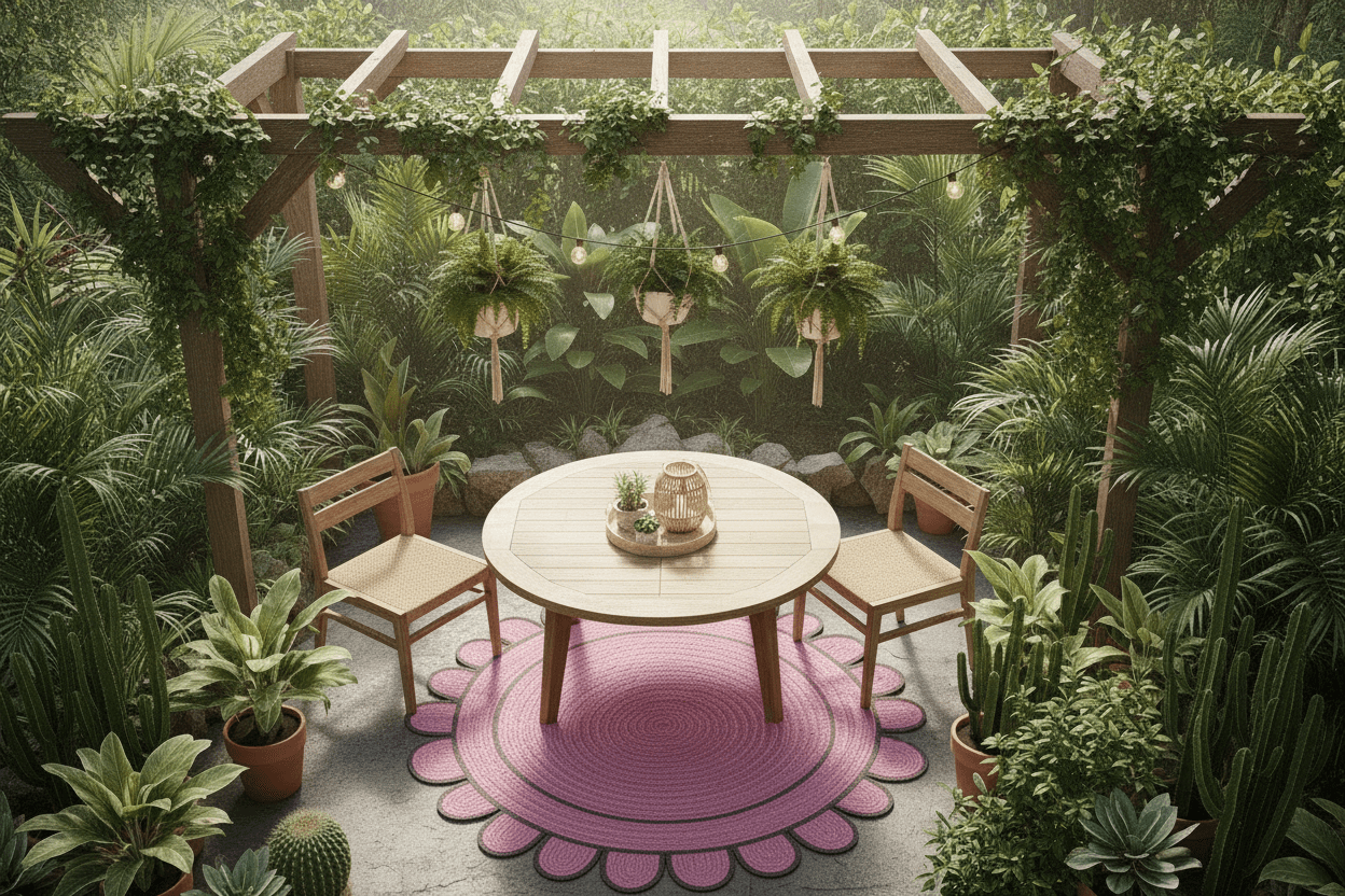 Handmade Scalloped Round Jute Rug - Pink