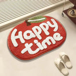 Add a touch of playful luxury to your bathroom with our Happy Time Bath Mat. This super soft, apple-shaped mat features plush, raised lettering that spells out "Happy Time" in a fun and cozy design. It's the perfect way to start and end your day on a joyful note, making every step out of the shower a luxurious one.