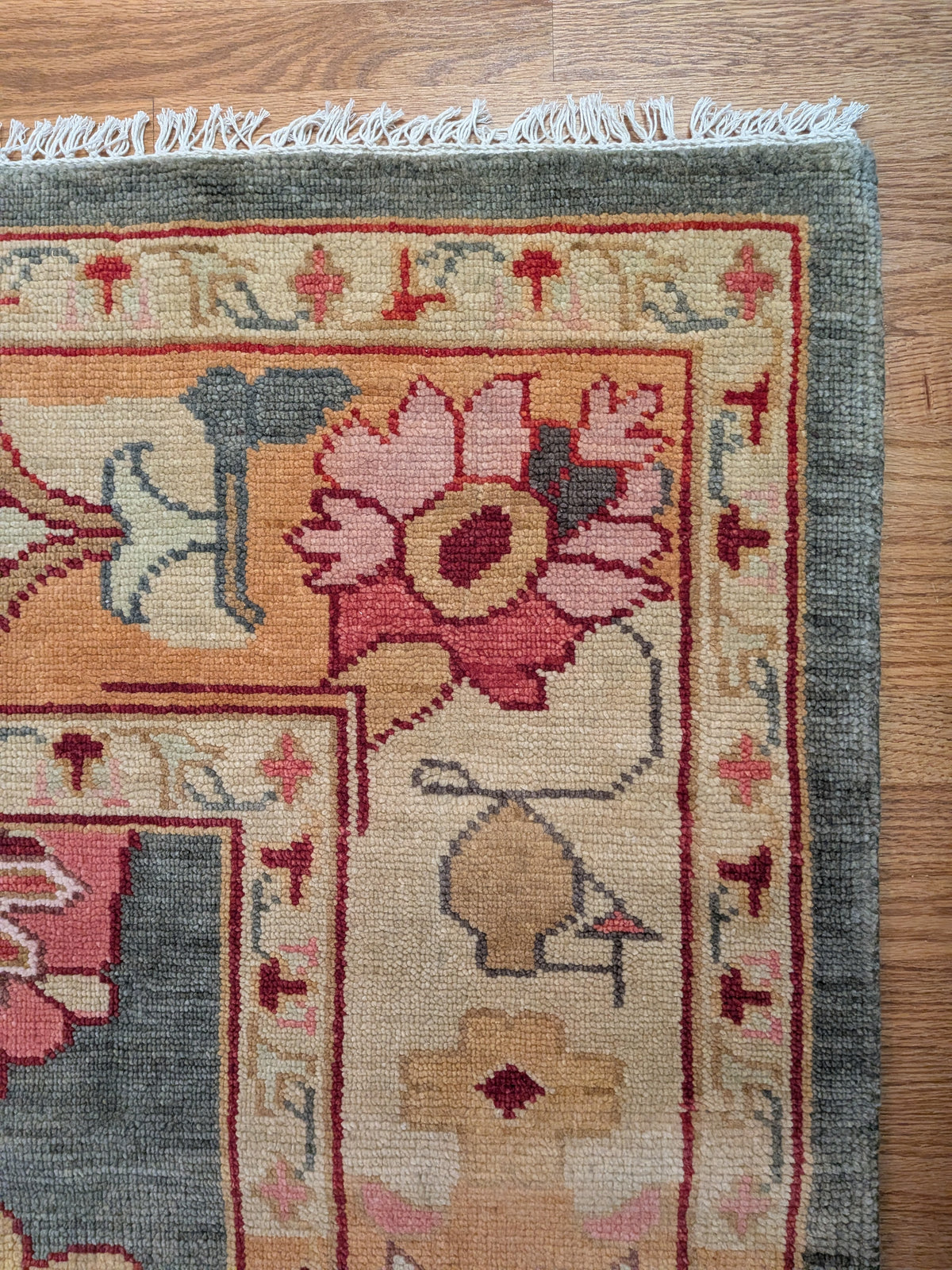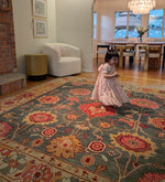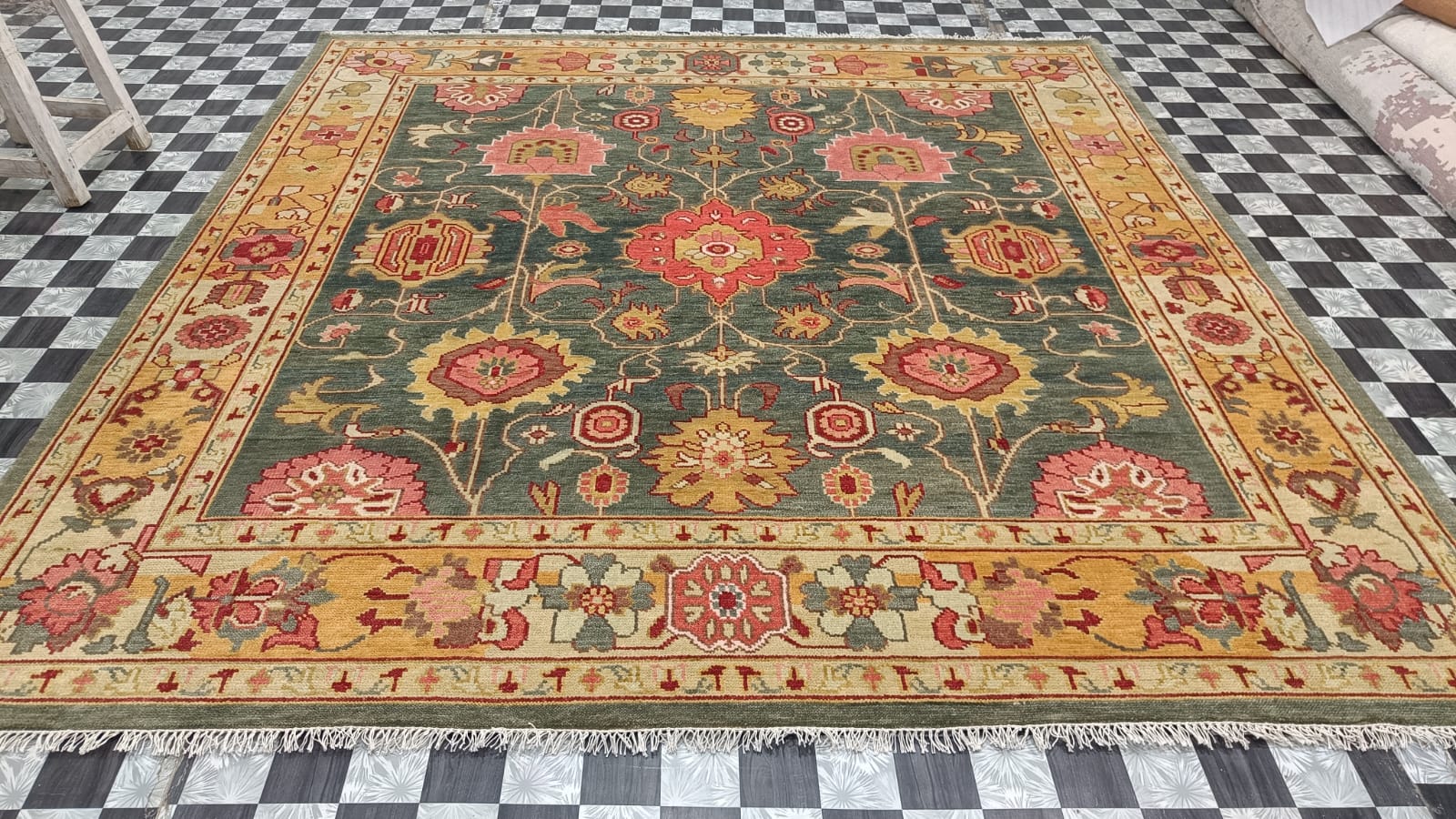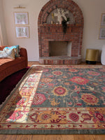 A one of a kind hand knotted rug. Only one made in size 9 x 9 ft