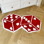 Roll the dice on style with this opulent bath mat, featuring two striking red dice with charming heart-shaped pips. The plush texture and vibrant design will add a touch of whimsy and luxury to your space. It's a statement piece that's both fun and sophisticated, perfect for anyone looking to elevate their decor with a playful twist.