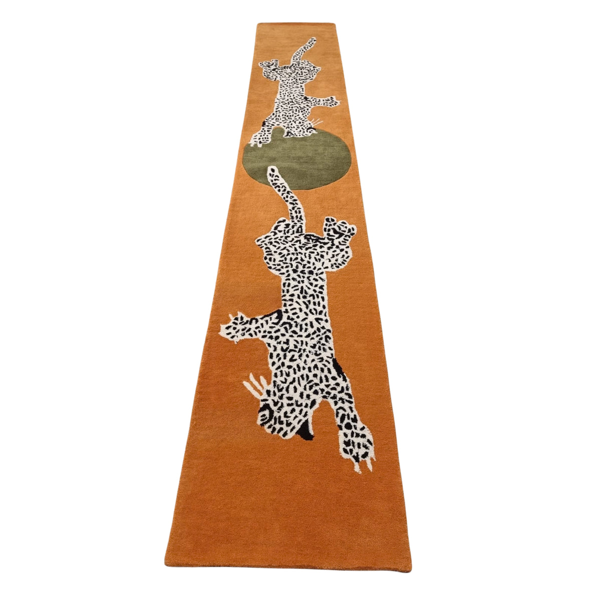 Leopards on Silky Road Hand Tufted Wool Rug Runner - Orange