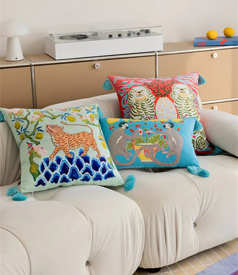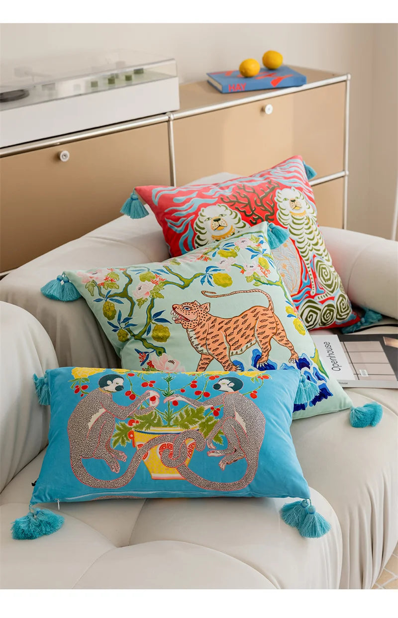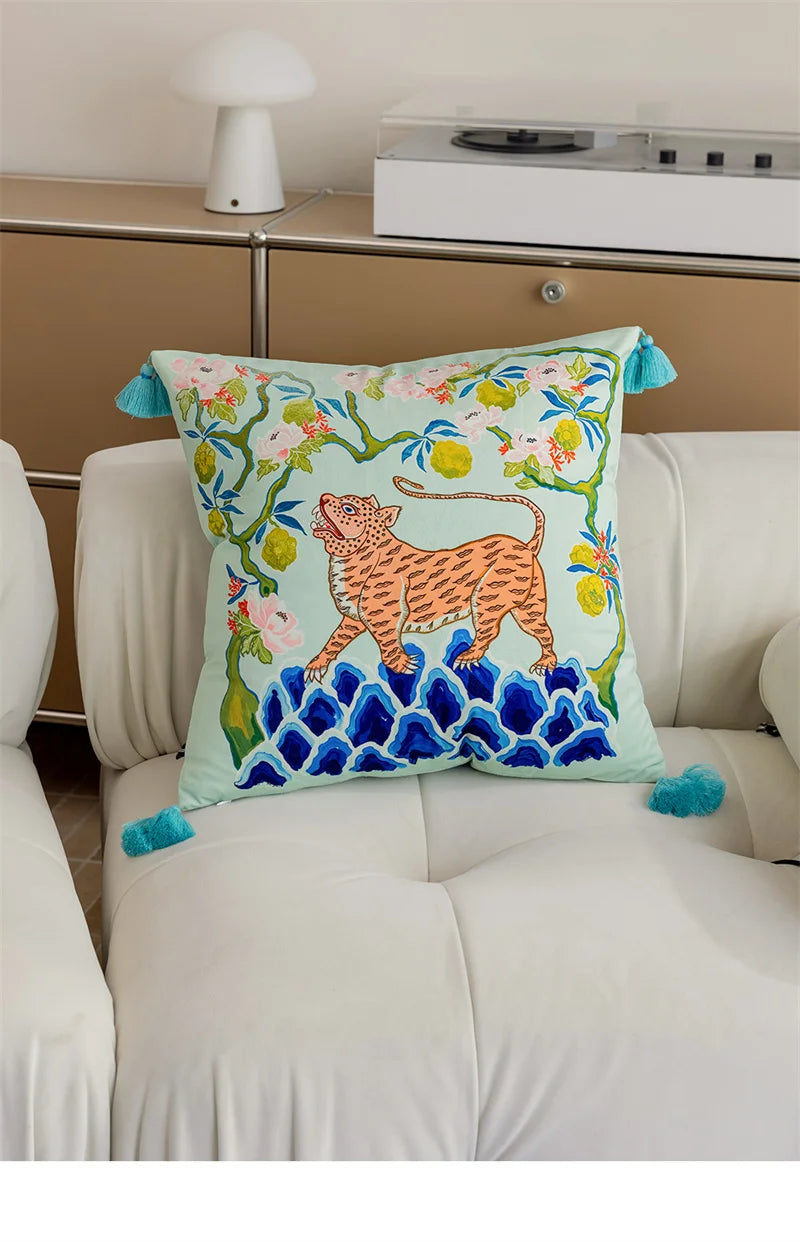 Luxe Leaping Tiger & Lemon Tree Pillow Cover
