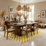 This beautiful wool rug was made by hand by Berber women in Morocco's High Atlas Mountains. It will add a classic touch to your home. It's made totally by hand from pure Moroccan wool and has a standard yellow and white checker pattern that was inspired by tribal patterns. For cozy, classy rooms, it's great because it's soft, long-lasting, and full of history.