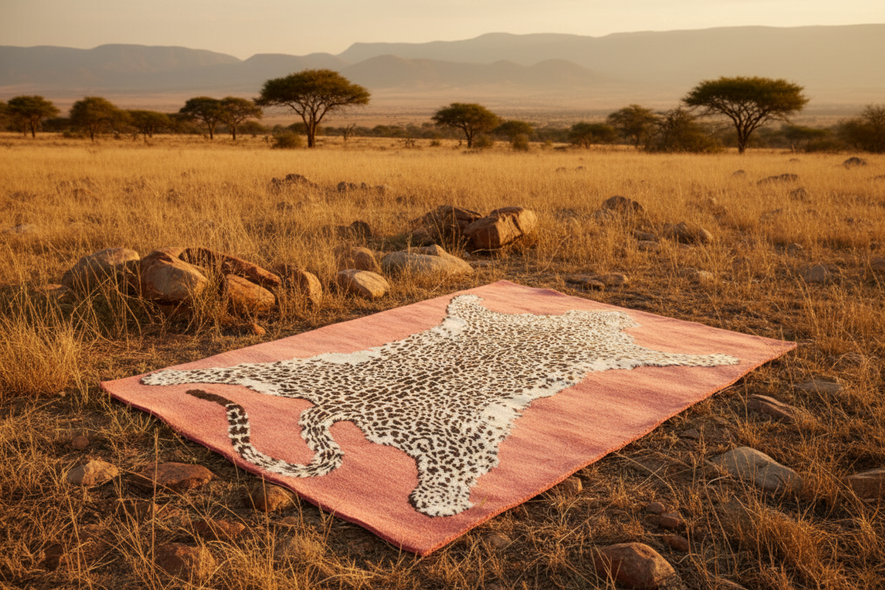 A stylish area rug designed to resemble a leopard skin with a peachy background, ideal for adding a bold touch to large living rooms. This hand tufted wool rug combines elegance with a wild flair, perfect for those seeking large area rugs that make a statement.