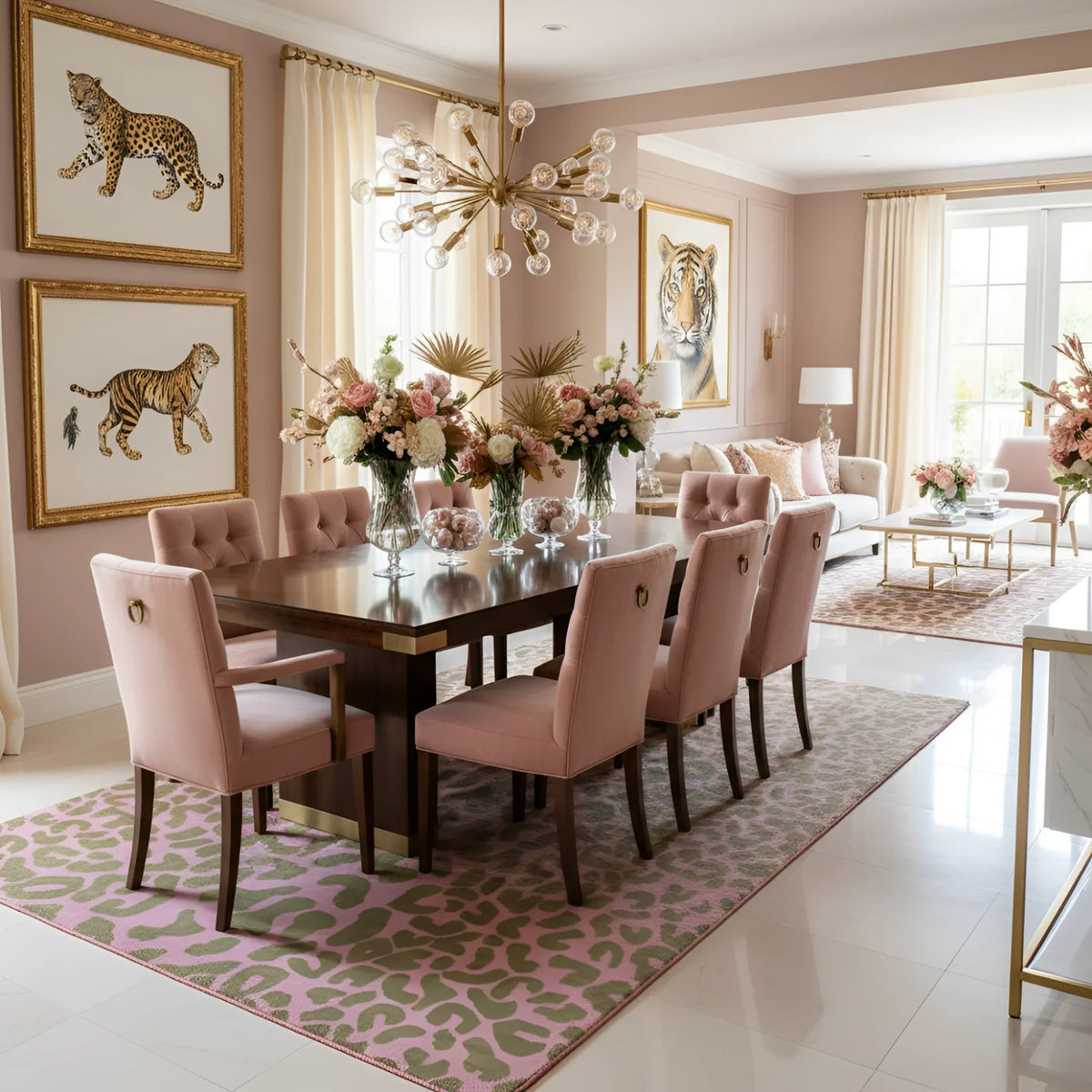With the help of our Pink and Gold Leopard Print Hand Tufted Wool Rug, you can turn your area into a wild and fashionable jungle. The addition of this fierce and fantastic floor masterpiece will bring a touch of untamed glamour, which will have everyone howling with envy for the interior decorating!