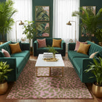 Pink and Gold Leopard Print Hand Tufted Wool Rug