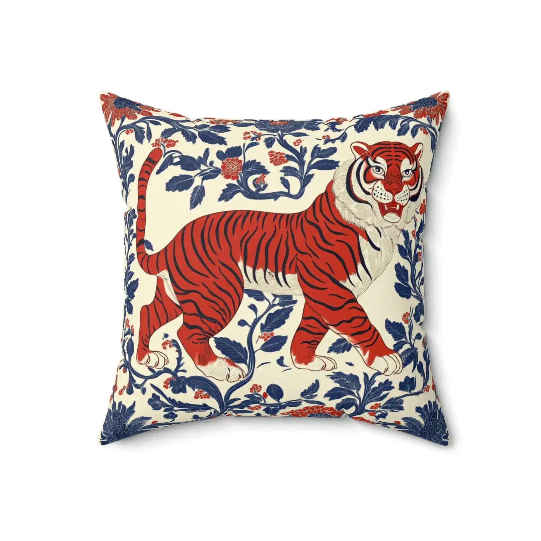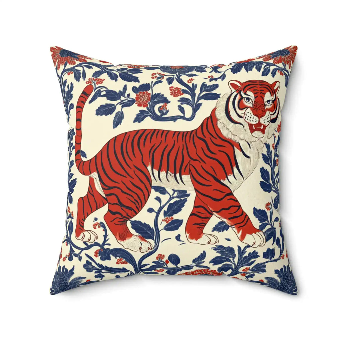 Regal Tiger Floral Throw Pillow