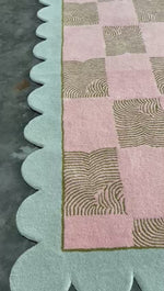Scalloped Leaf Checker Pastel Hand Tufted Rug