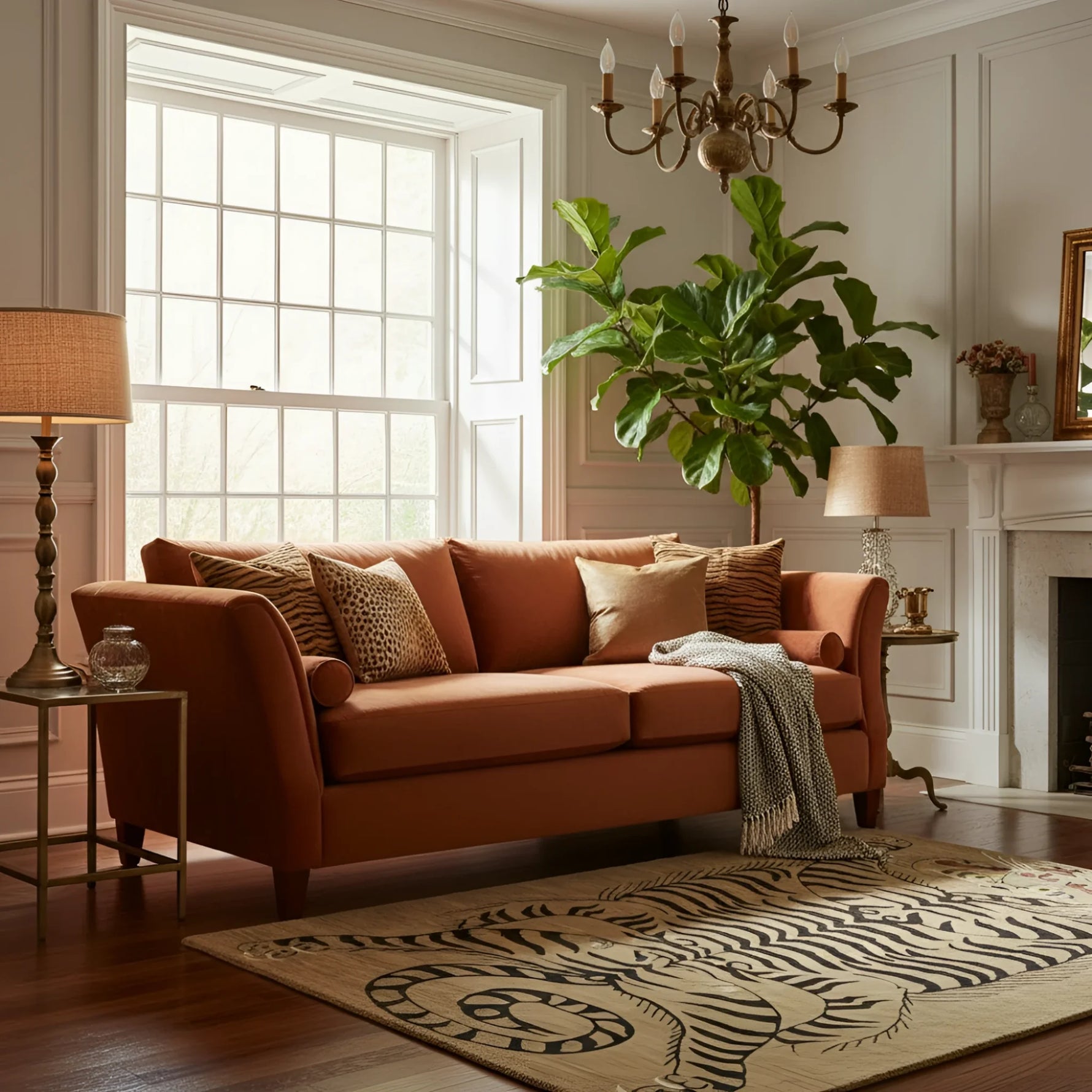 Tanned Jungle Cat Hand Tufted Wool Rug