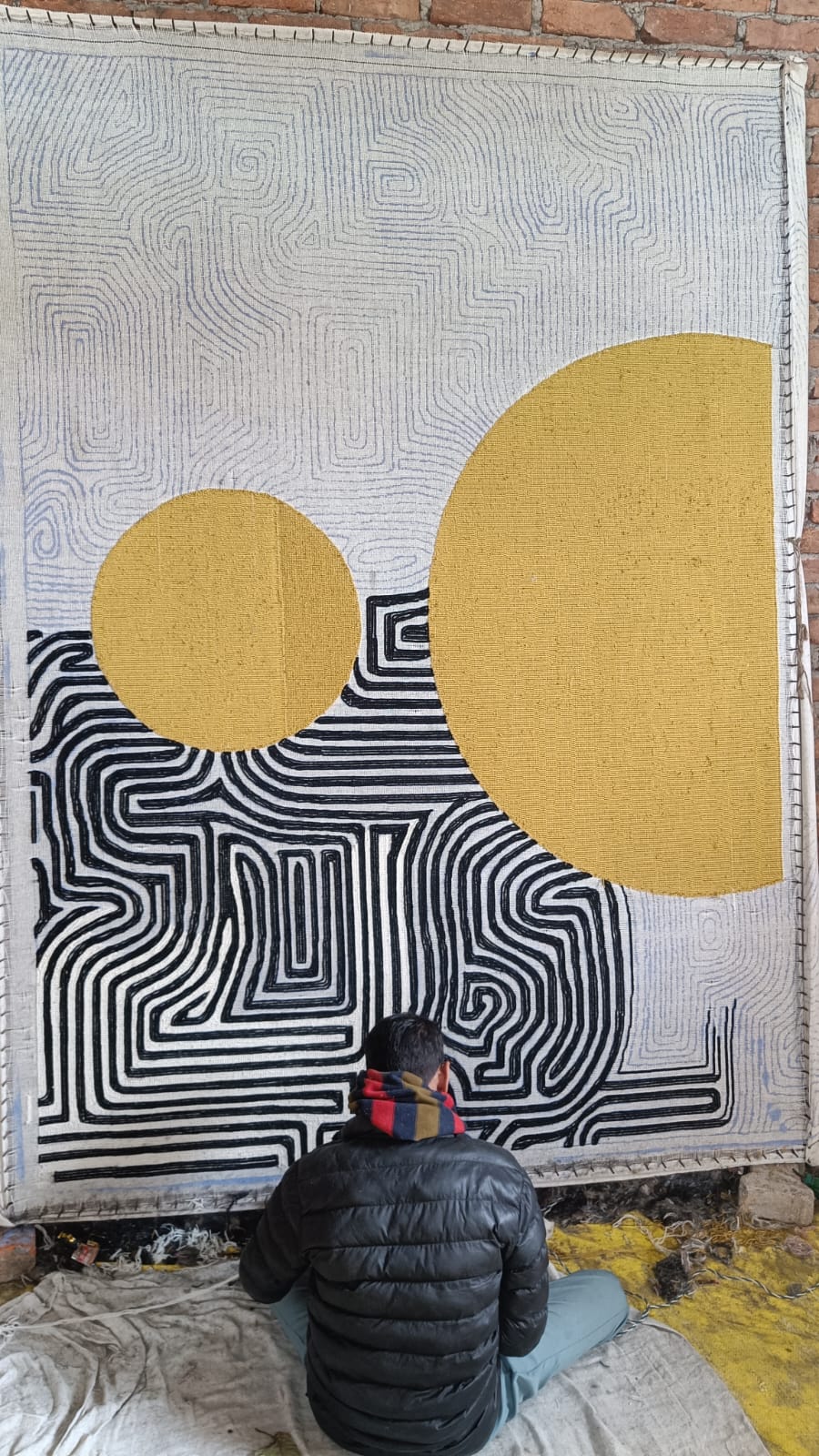 Three Golden Suns Maze Hand Tufted Wool Rug