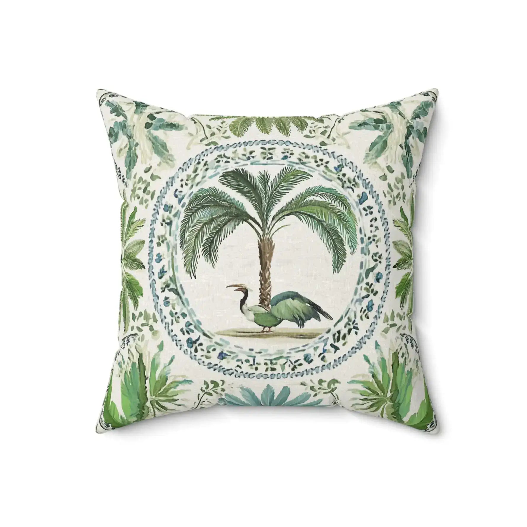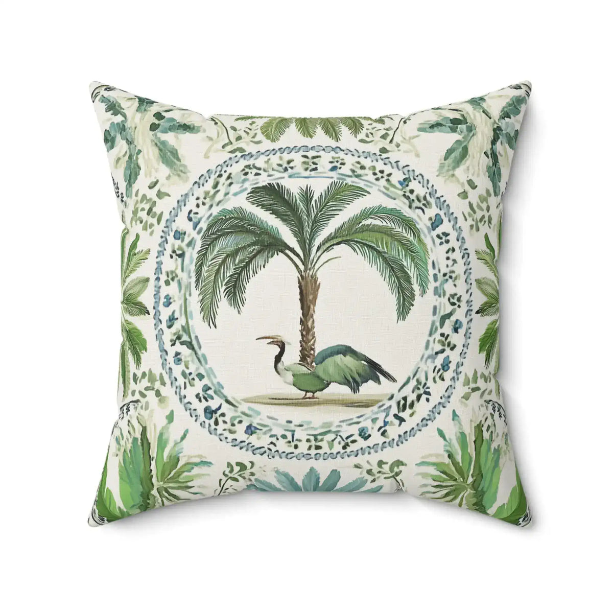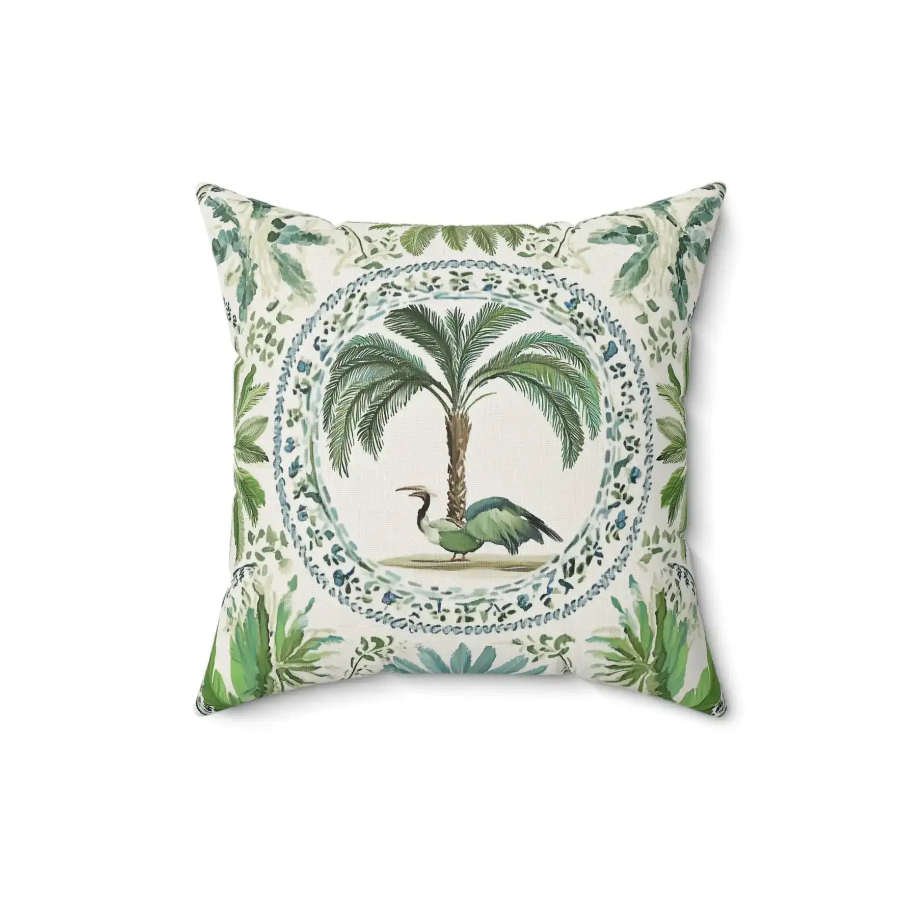 Tropical Heron & Palm Throw Pillow