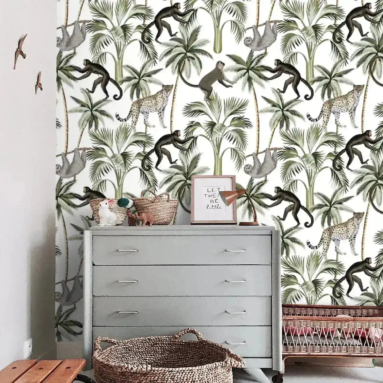Create instant accent walls and so much more with high-quality and colorful removable wallpapers and wall murals. It's a perfect solution to decorate your home, office, or business. Just peel, stick, create and enjoy. Brighten up your interior and get a completely new look in minutes with Tropical Monkeys and Coconut Tree Wallpaper.
