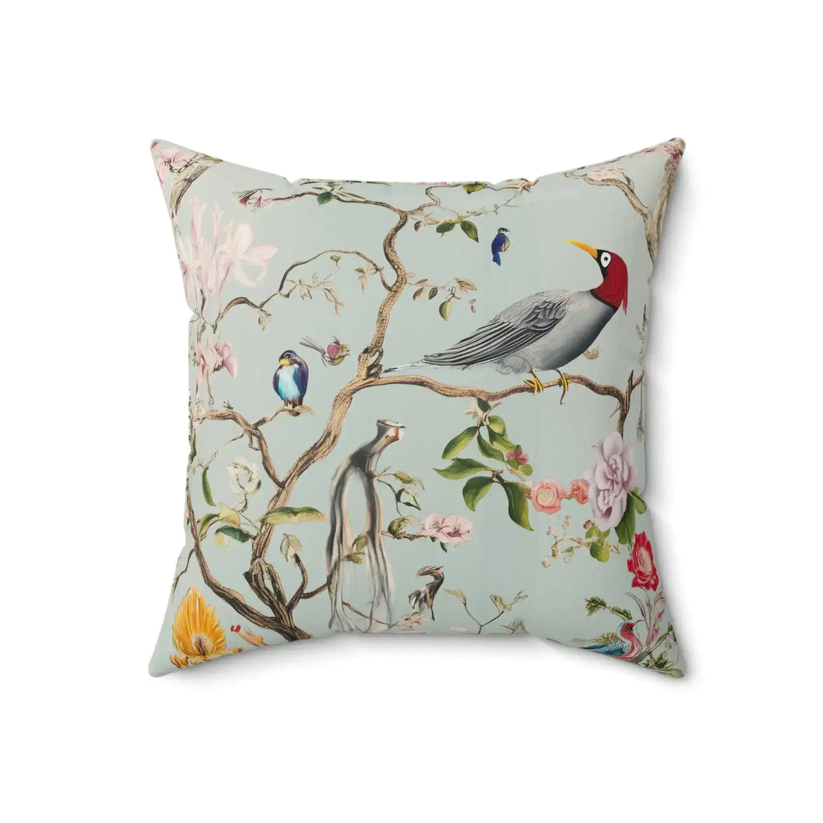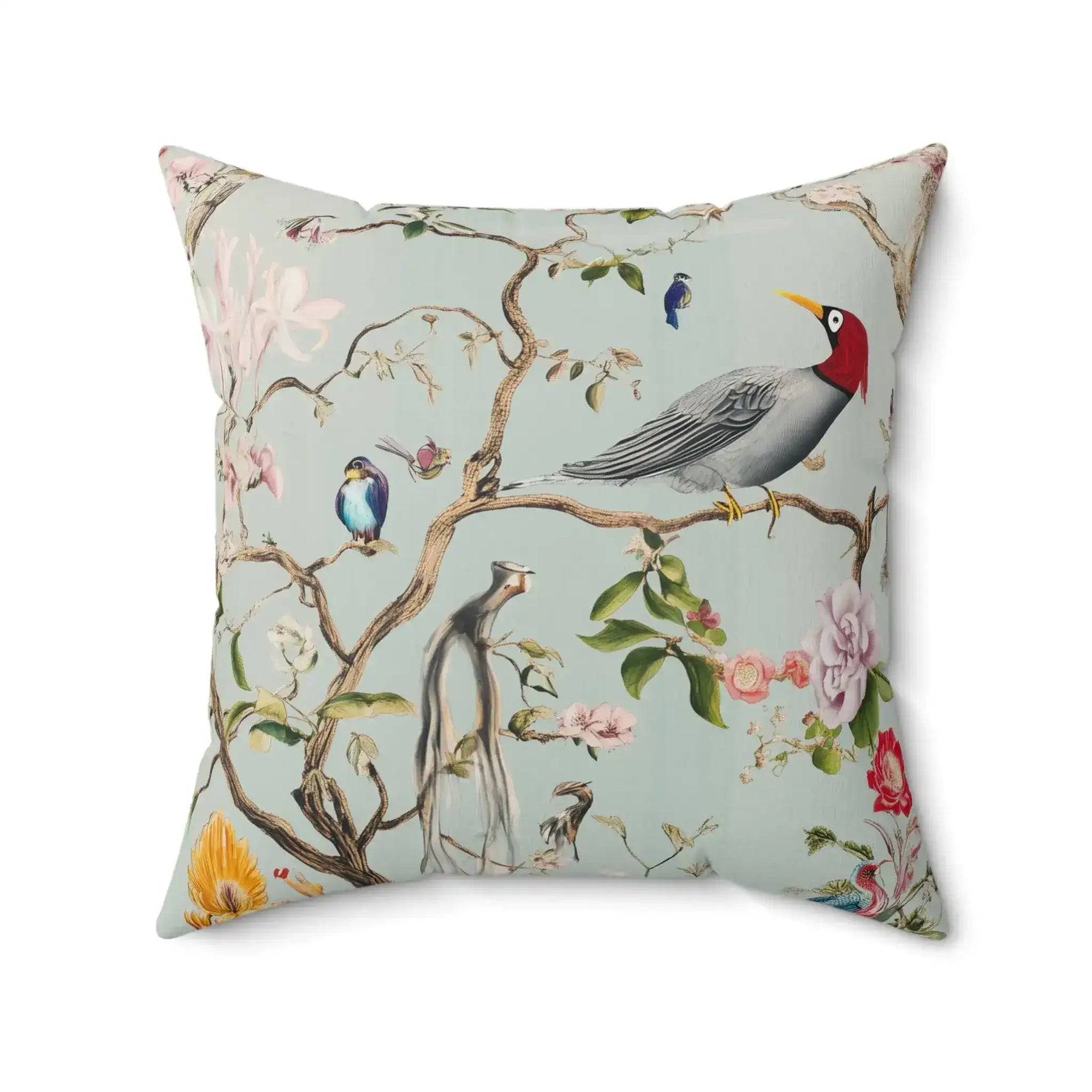Verdant Songbird Garden Throw Pillow