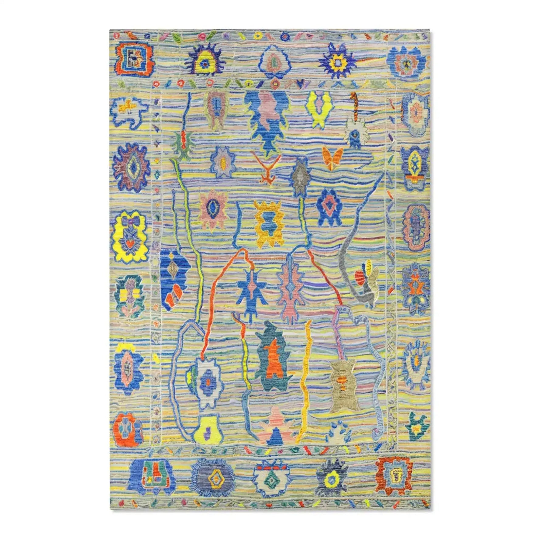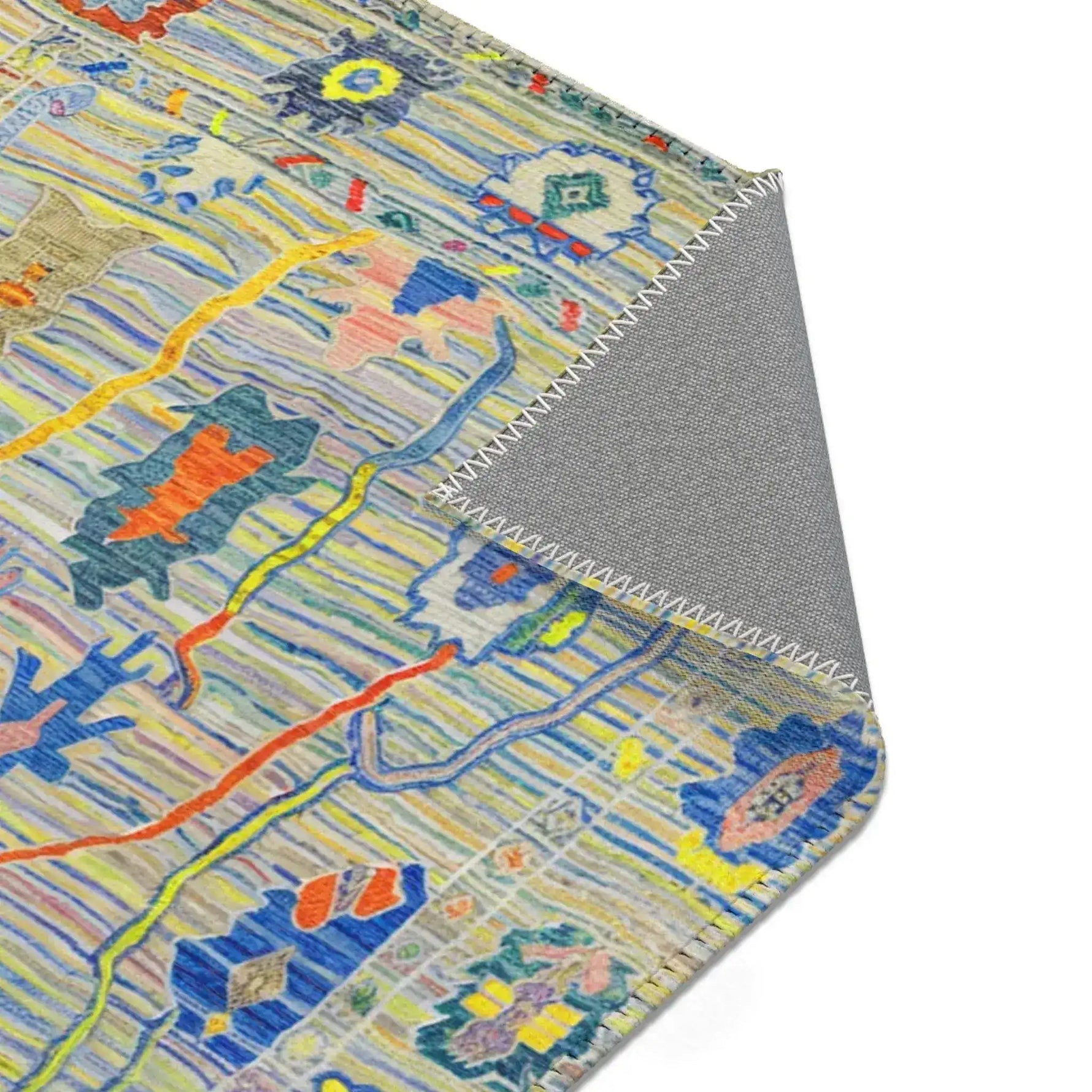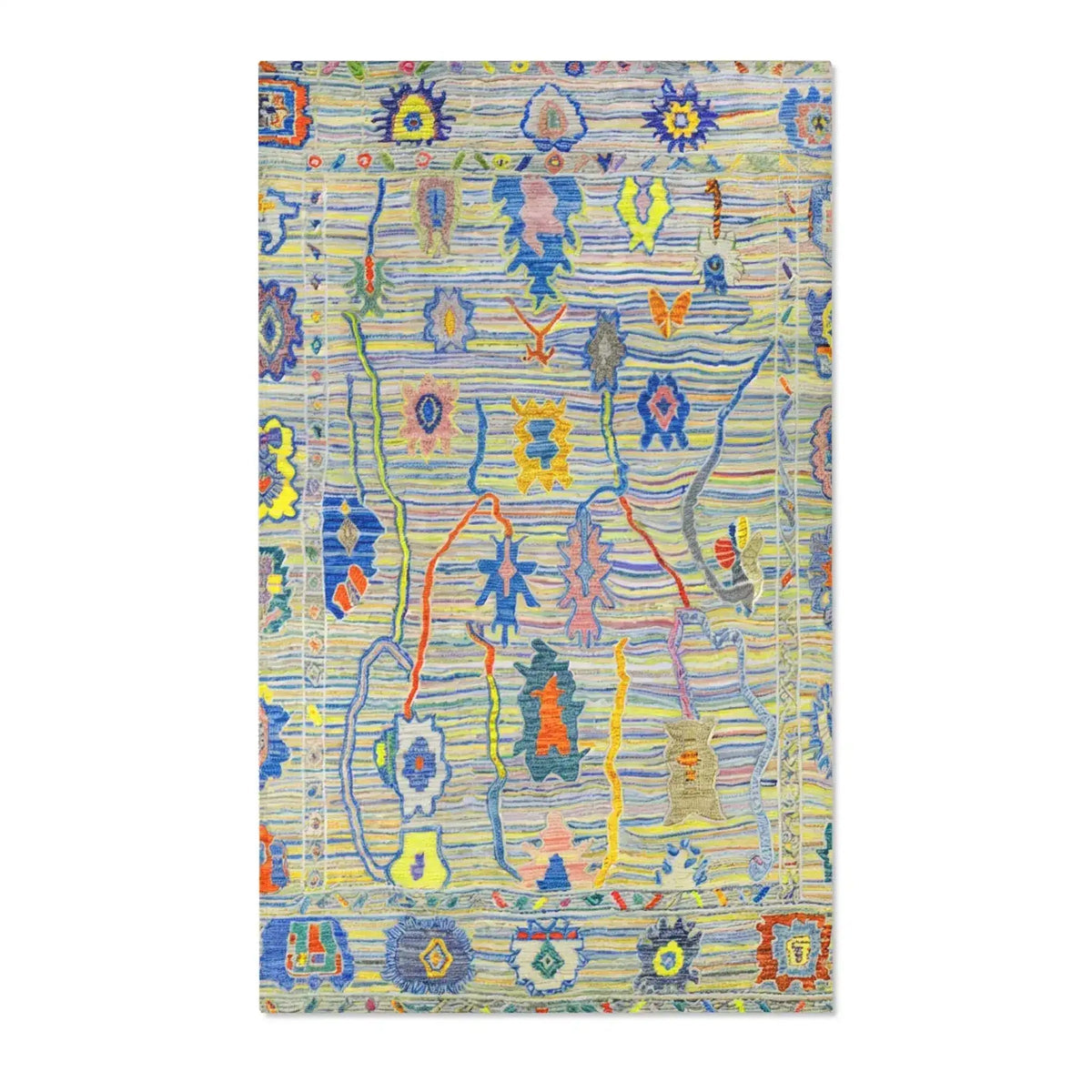 Vibrant Pastel Blue and Yellow Tribal Pattern Accent Rug