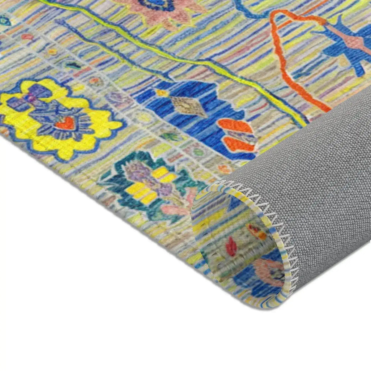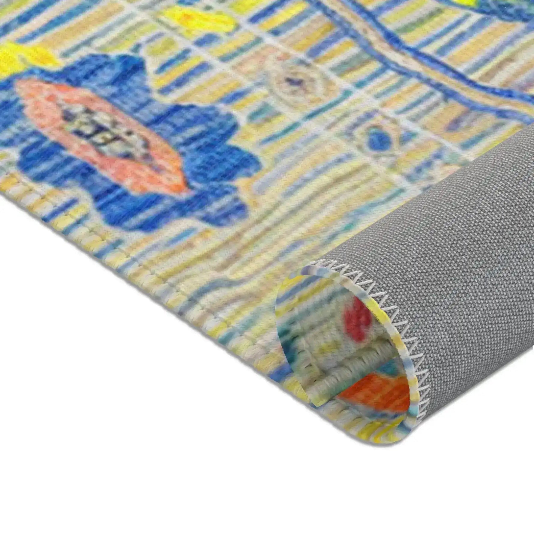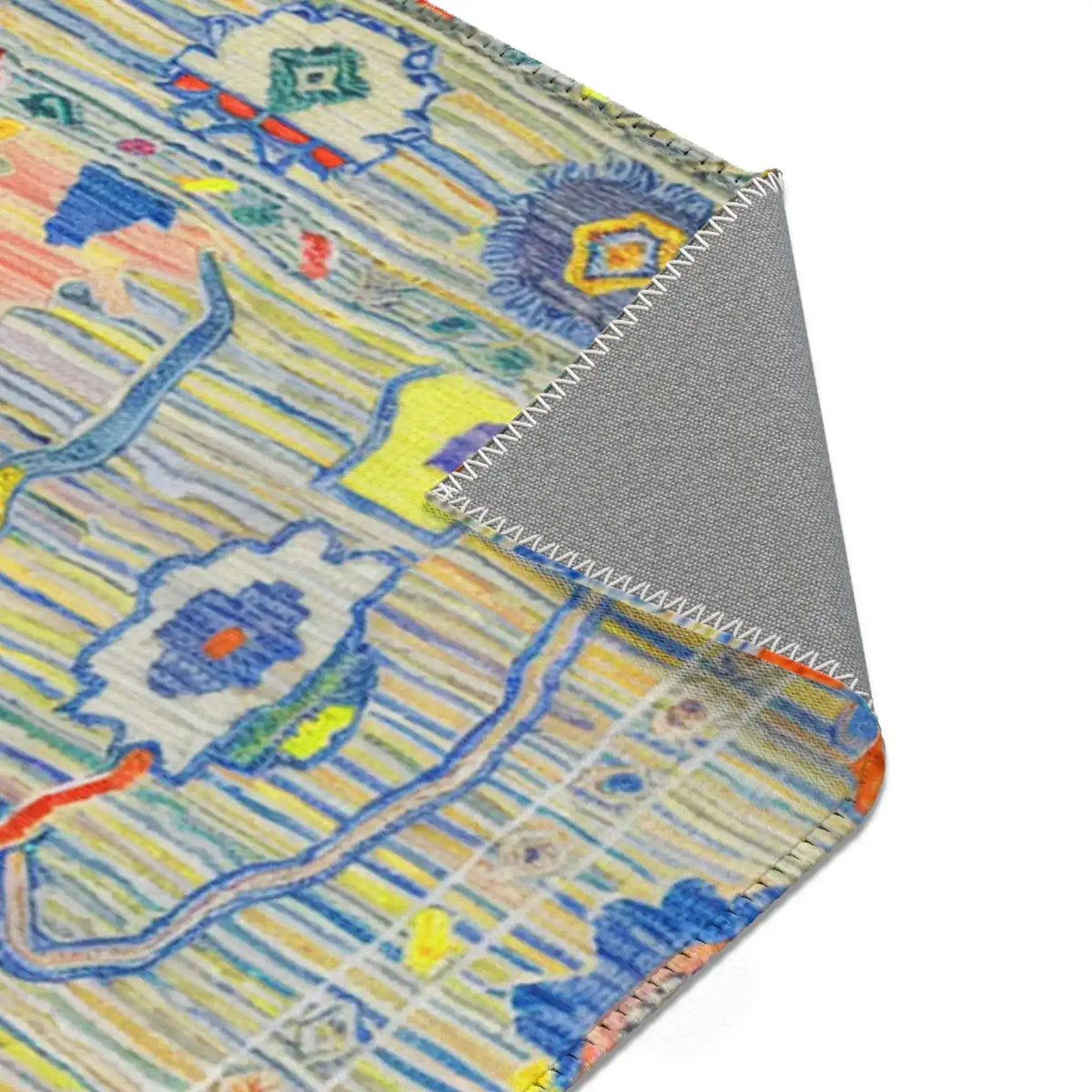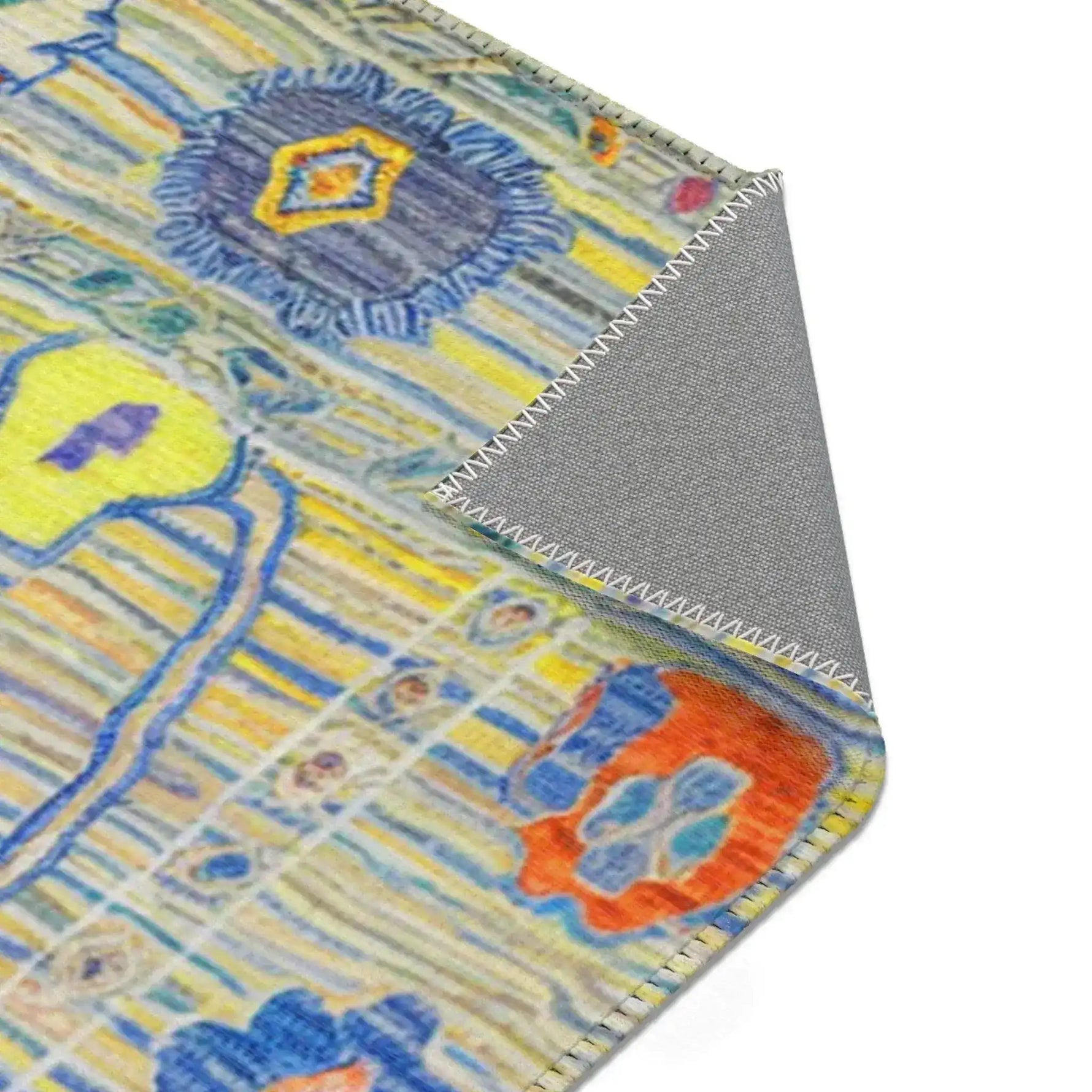 Vibrant Pastel Blue and Yellow Tribal Pattern Accent Rug