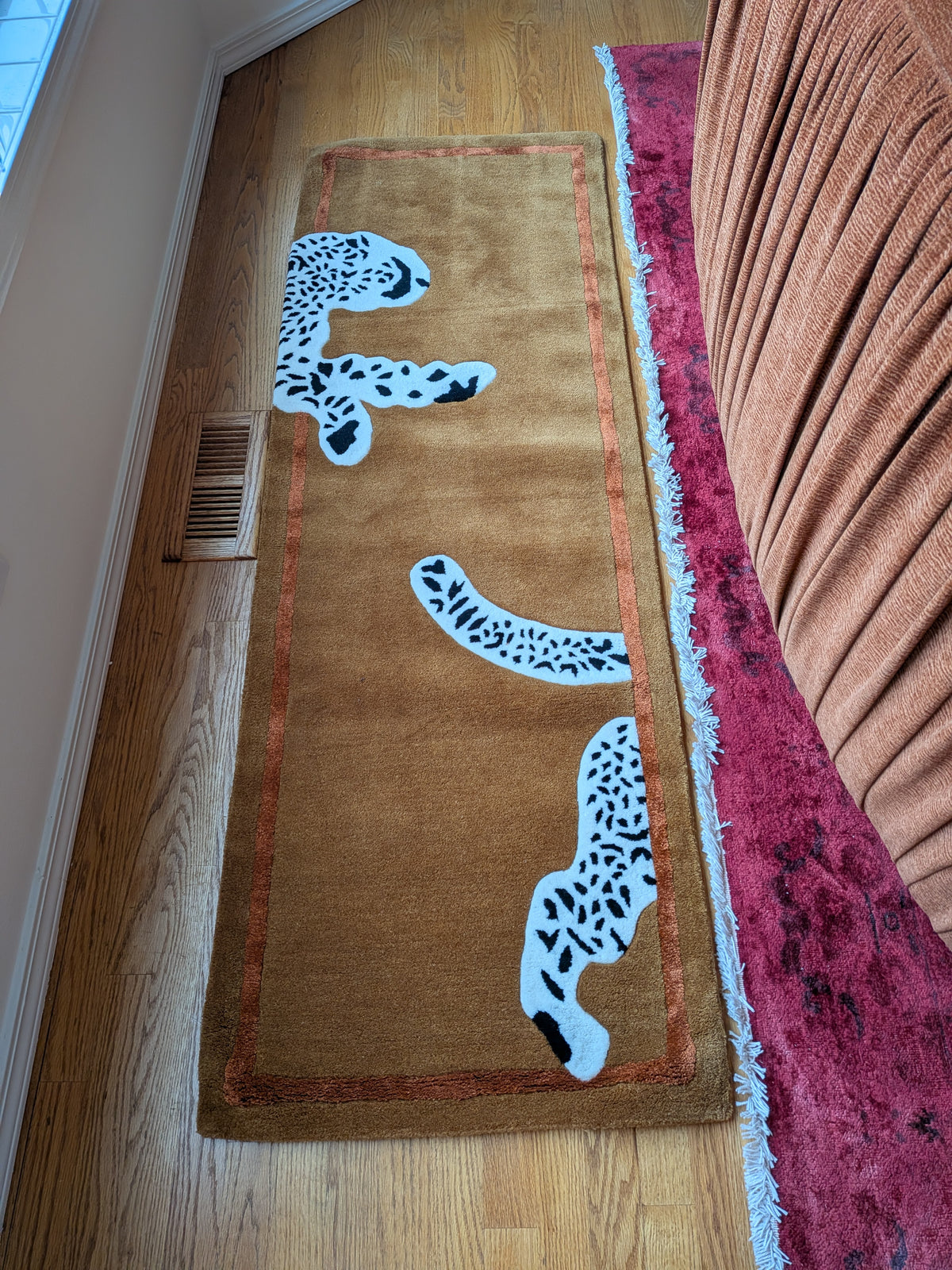 You are welcome to enter a world of bold beauty with our Walking Wild Cat Leopard on Silk Road Hand Tufted Wool Rug - Gold Lush Brown. This beautiful rug brings a wild elegance to your home by combining creative ideas from around the world with a lot of different textures. It is made by hand from high-quality New Zealand wool and has a rich feel and a bold design that will make any room stand out. This rug turns ordinary floors into visual stories. It's great for adding personality to your hallway or adding style to your bedroom.