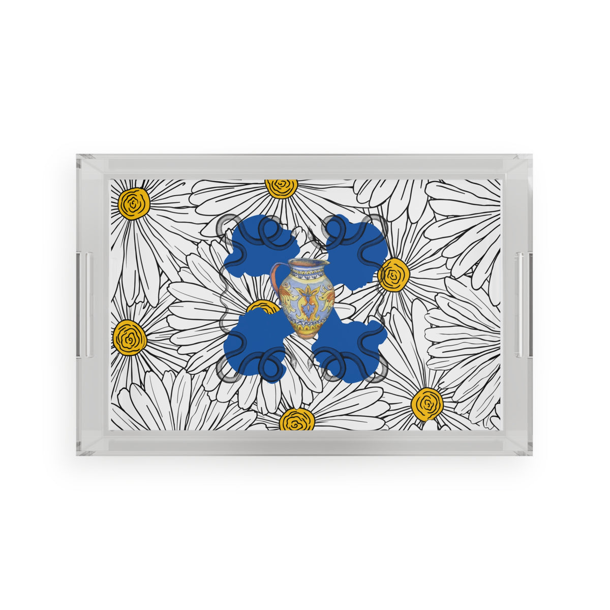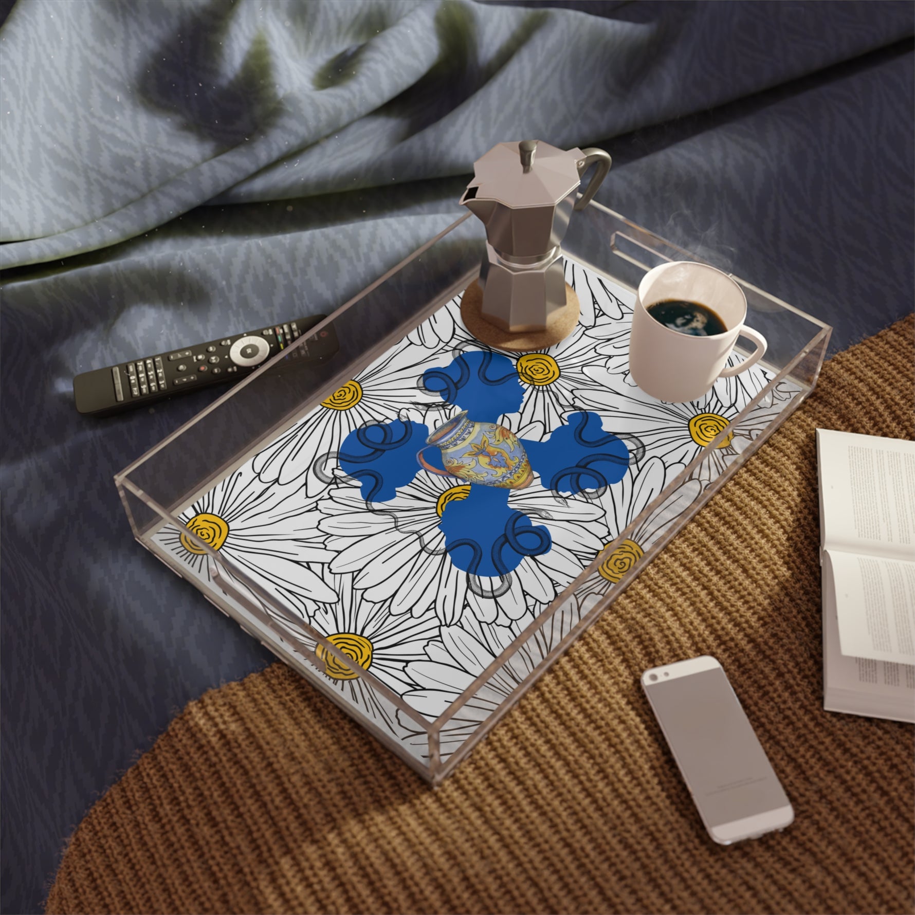 White Daisy Ladies in Blue Acrylic Serving Tray