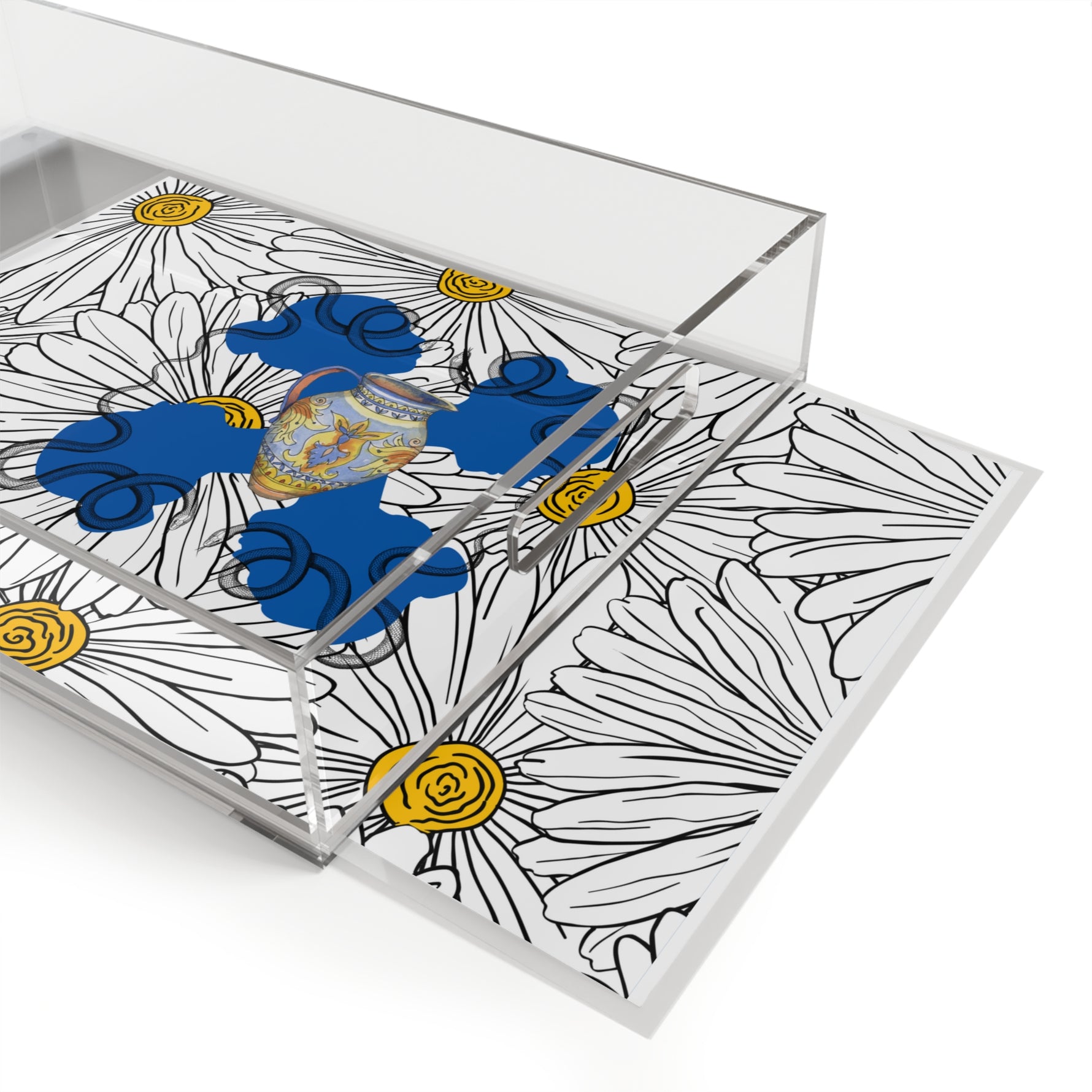 Introducing the White Daisy Ladies Acrylic Serving Tray - the perfect addition to any kitchen or living room. Made from durable acrylic, this tray features beautiful white daisies print and blue female busts. Great for serving drinks, snacks, or as a decorative piece, this tray is both functional and stylish. It's easy to clean and lightweight, making it perfect for entertaining or everyday use. Order yours today and add a touch of elegance to your home with the White Daisy Ladies Acrylic Serving Tray.