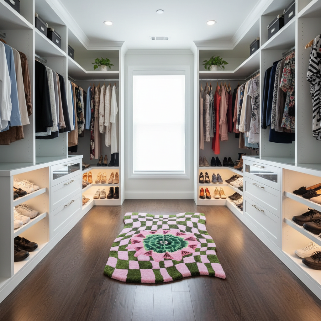 Wild Flower Wavy Checker Hand Tufted Wool Rug
